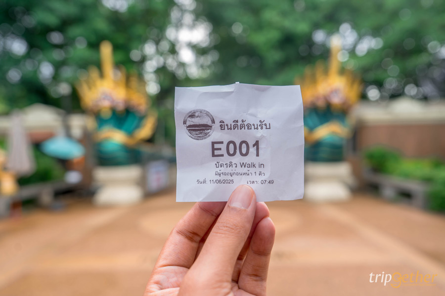 นำบัตรคิวที่ได้รับมาหย่อนลงในกล่องที่มีเจ้าหน้าที่คอยดูแลอยู่ด้านหน้า สะพานนาคราช คำชะโนด