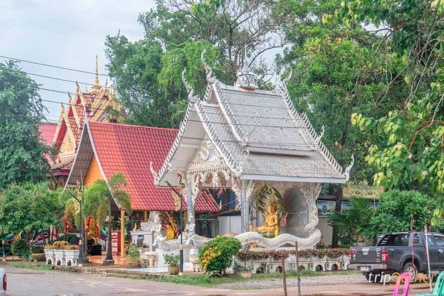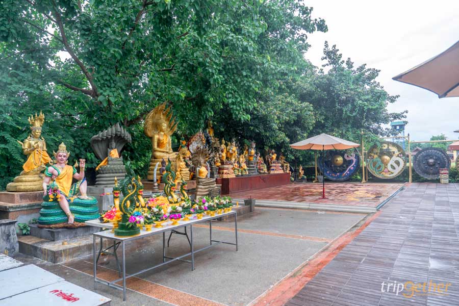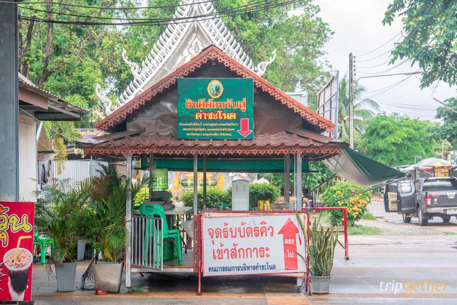 ก่อนเข้าไปด้านใน คำชะโนด อันดับแรกเราต้องไปเข้ารับบัตรคิวก่อน จากนั้นเดินไปตามทางเข้า ผ่านจุดคัดกรอง เพื่อไปยังจุดจำหน่ายเครื่องสักการะที่มีให้เลือกมากมายหลายแบบเลยทีเดียว