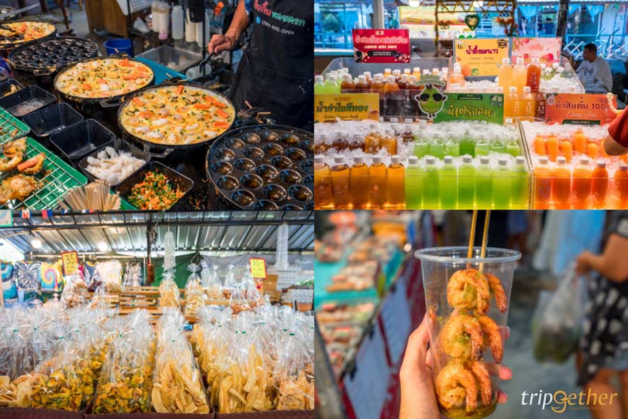 การได้มาชิมช้อป ตะลุยกินของอร่อยในตลาดน้ำคลองลัดมะยมถือเป็นอีกไฮไลท์หนึ่งของที่นี่เลยก็ว่าได้ เพราะ ตลาดน้ำคลองลัดมะยมมีของกินมากมายและหลากหลายสุดๆ เลือกซื้อไม่ถูกกันเลยทีเดียว ทั้ง กุ้งเสียบไม้กับน้ำจิ้งซีฟู้ดสุดแซ่บ ขนมครกทะเล ขนมโค ขนมเล็บมือนาง และกองทัพขนมไทยโบราณอื่นๆ อีกเพียบ!