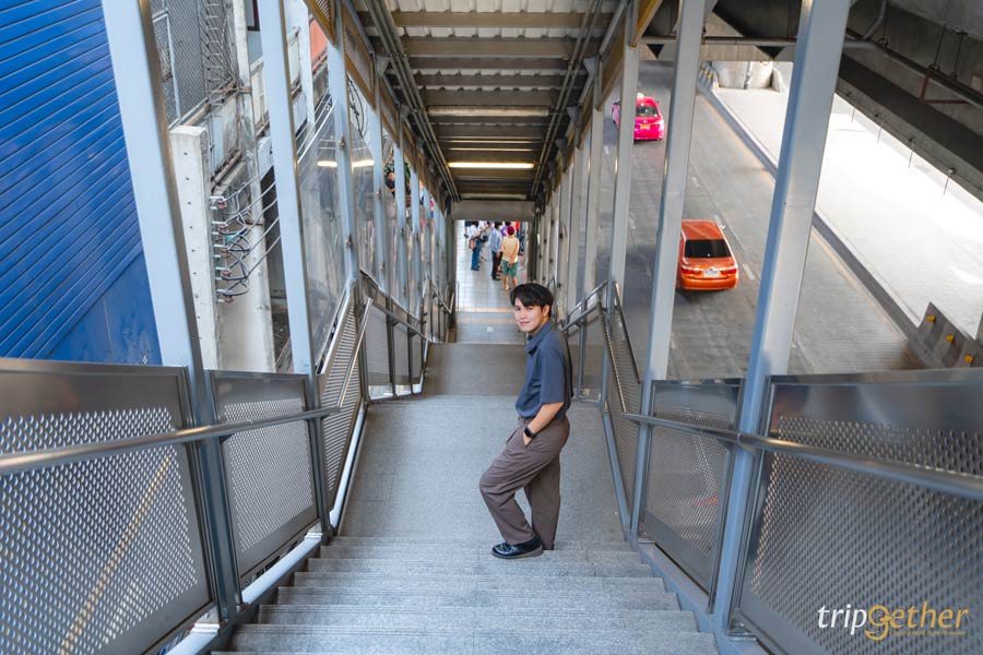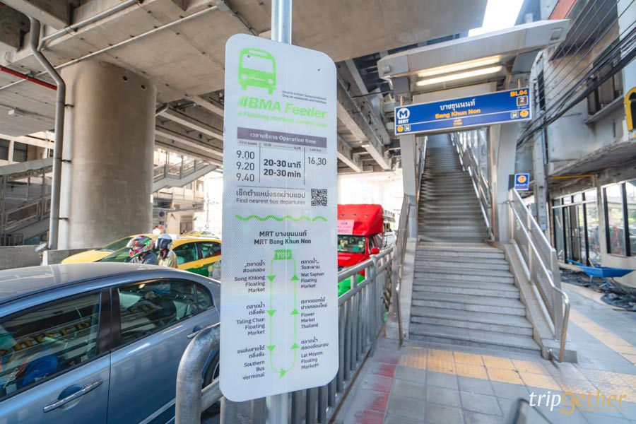 พอลงมาจากสถานีรถไฟฟ้าก็จะเจอกับป้ายตารางเวลาการเดินรถบัสไฟฟ้า