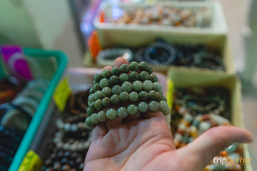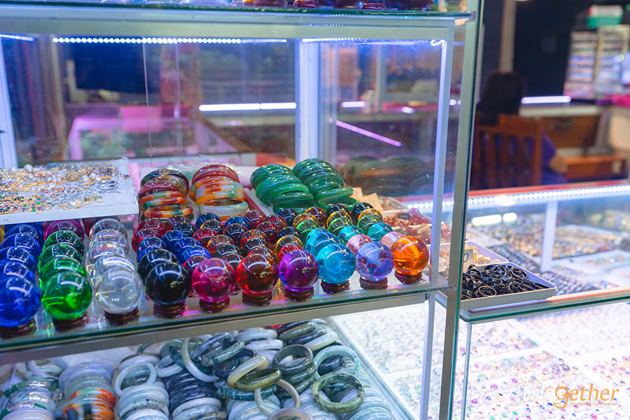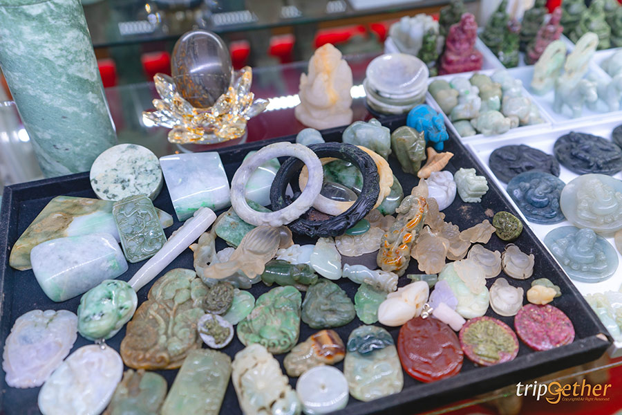 นอกจากนี้ยังเป็นตลาดการค้าอัญมณีสวยอีกด้วย เพราะหยกของพม่าของเป็นของขึ้นชื่อมากว่าสวยงาม ที่ตลาดมีร้านเครื่องประดับที่ทำจากหิน หยกต่างๆ ให้เลือกหลายร้าน มีสร้อย แหวน กำไลหินมงคล ที่ต้องซื้อมาเสริมดวงกันคนละชิ้นสองชิ้นให้ได้เลือกสรรกลับไปเป็นของฝากสุดเก๋