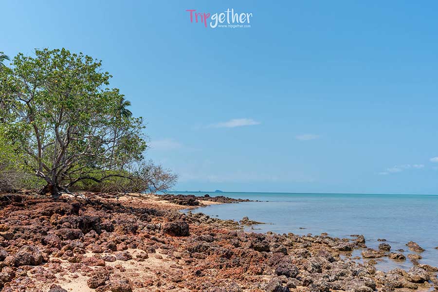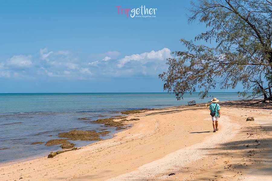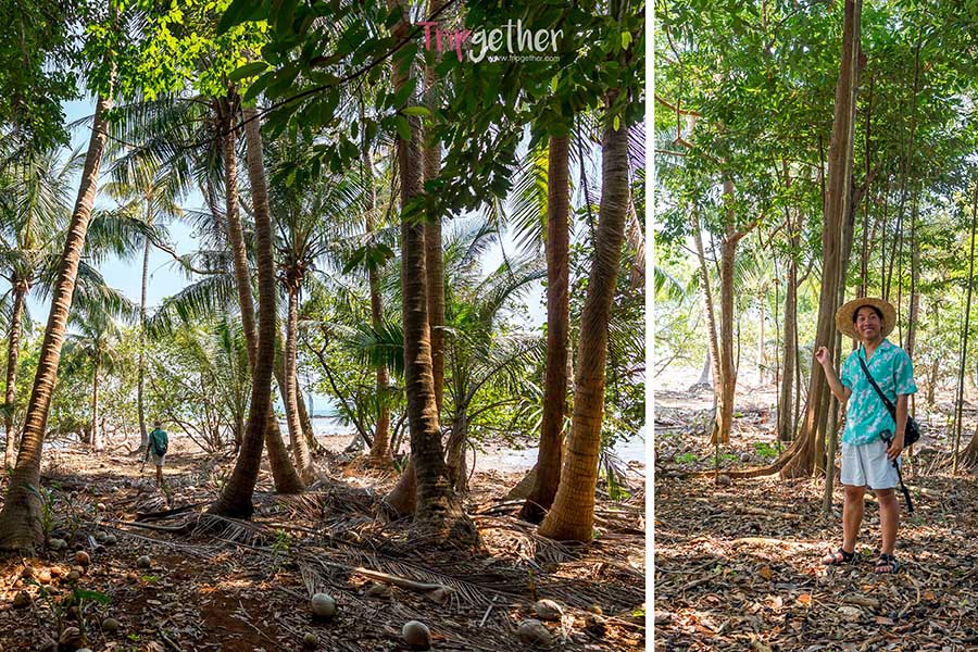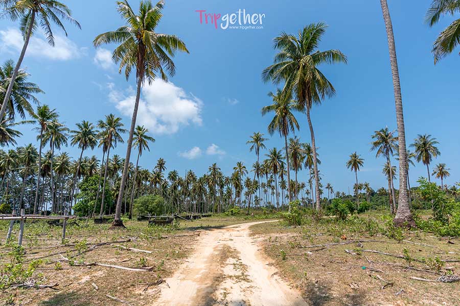 จากนั้นเดินกลับมายังเส้นทางเดิมเดินลัดเลาะไปตามหาดทรายราว 10 นาที จะพบกับความอันซีนที่ลำดับสุดท้าย ก็คือต้นมะพร้าวมีเฉียงออกไปรับแดดหน้าหาด ซึ่งตรงนี้เรียกว่าหน้าหาด เป็นจุดที่นักท่องเที่ยวนิยมมาเล่นน้ำ ถ่ายรูป และนั่งปิกนิกยามบ่าย… เดินเล่นครบ 3 จุด ใช้เวลาราว 1 ชั่วโมง