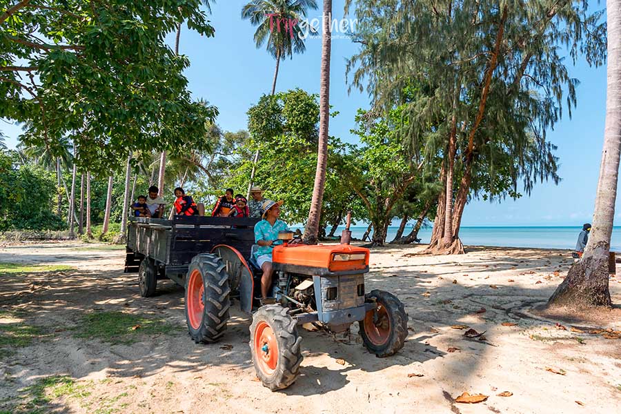 บนเกาะมีบริการรถรับส่ง ทั้งรถมอเตอร์ไซต์ รถพ่วงข้าง และรถอีแต๊ก ซึ่งขึ้นอยู่กับจำนวนของแตะละกรุ๊ป