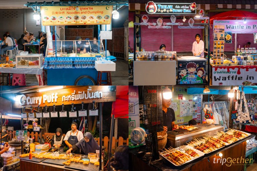 ยืนหนึ่งในถนนคนเดินก็คงหนีไม่พ้นเรื่องของอาหาร เพราะที่นี่ตลอดสองฝั่งข้างทางเต็มไปด้วยเมนูอาหารที่หลากหลายทั้งอาหารท้องถิ่น อาหารนานาชาติ อาหารไทย ของกินเล่น น้ำปั่น ไปจนถึงขนม เรียกได้ว่าไม่ต้องกลัวไม่อิ่มกันเลยทีเดียว