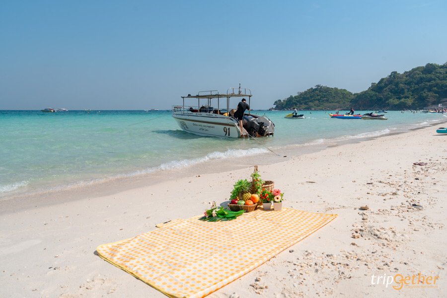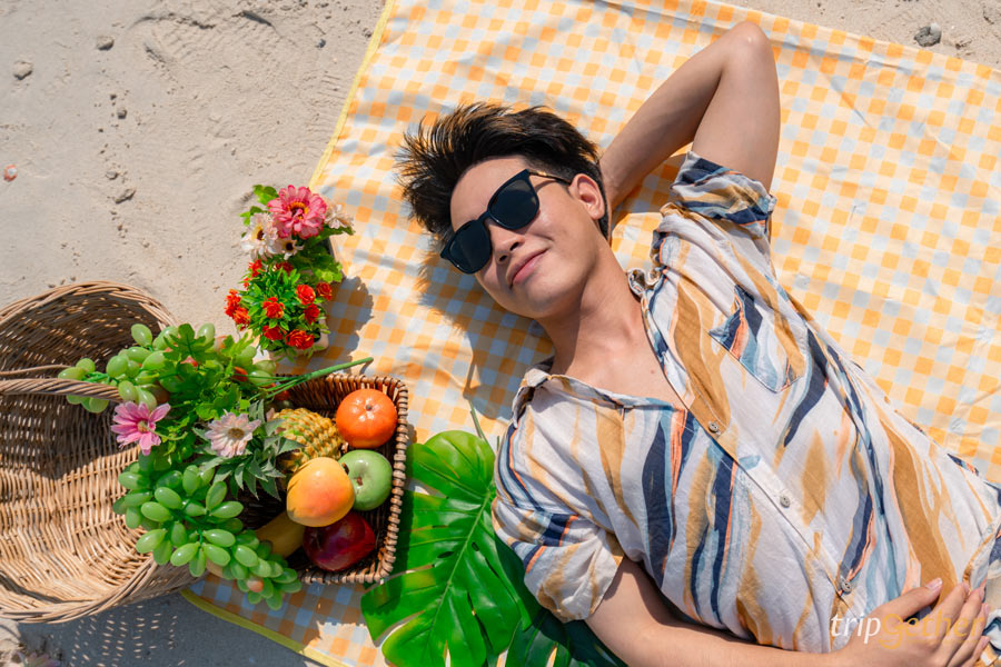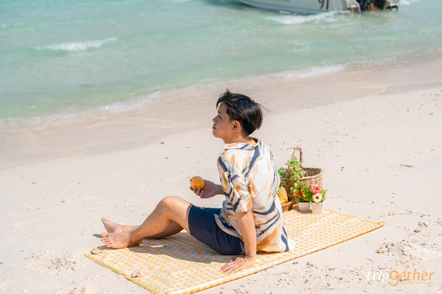 สำหรับใครที่เป็นสายถ่ายรูป ก็ยังมีเซ็ตปิคนิคน่ารักๆ กลางชายหาดให้ถ่ายรูปด้วยนะ ผ้าปู พร็อพดอกไม้ ผลไม้น่ารักๆ ฟีลเกาหลีไม่ไหว มีทะเลสีฟ้าใสเป็นฉากหลัง สวยมากๆ