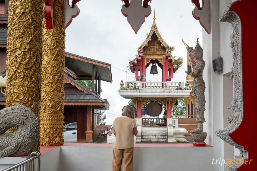 ฆ้องยักษ์ภายในพระธาตุดอยตุง หลายคนมักจะมาลูบฆ้องให้เสียงดัง เชื่อว่าพรที่ขอจะสำเร็จ สมหวัง