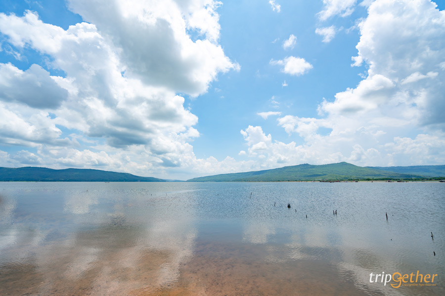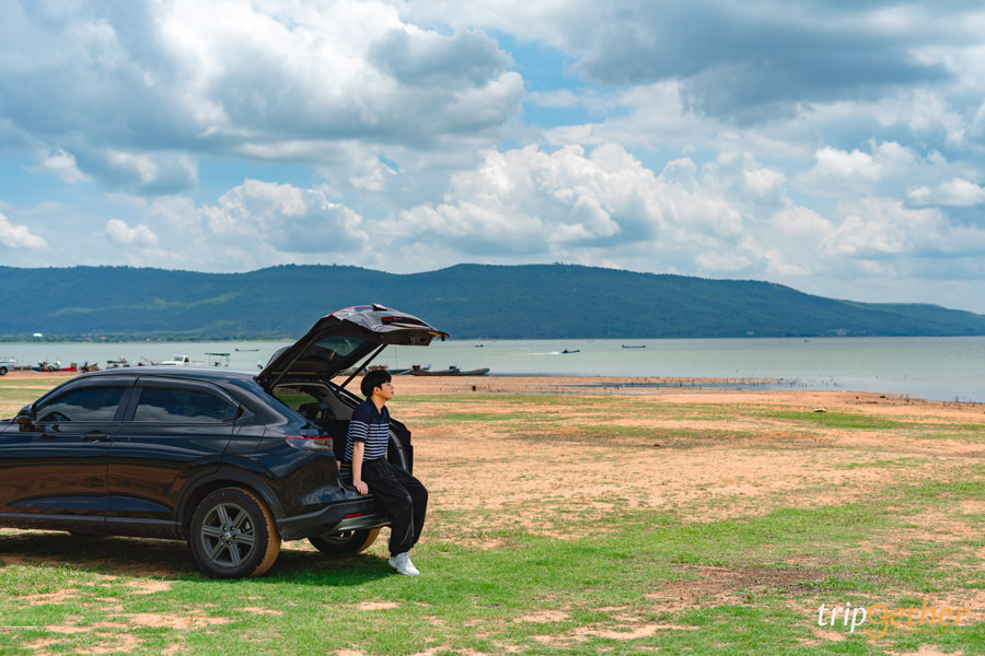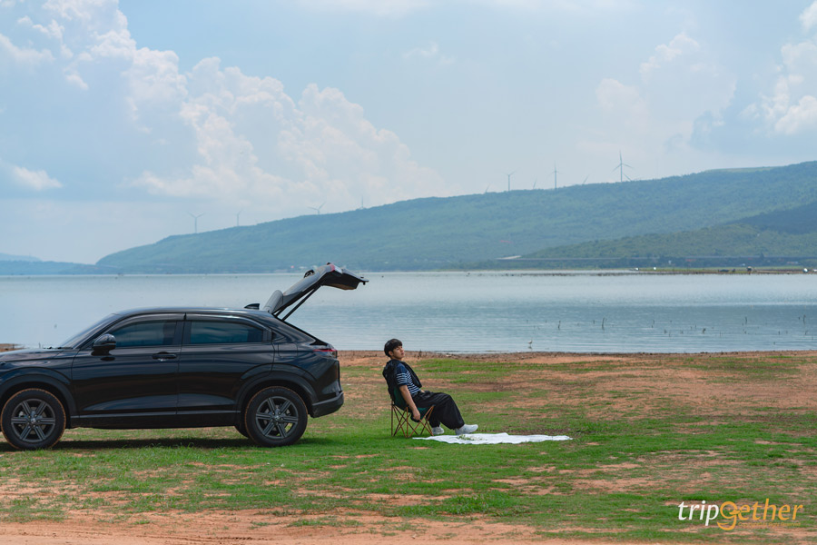 สำหรับสายคอนเท็นต์บอกเลยว่าเตรียมพร็อพให้พร้อมเพราะแสงถ่ายรูปช่วงเย็นสวยมาก มีฉากหลังเป็นผืนน้ำสีครามนวลสวยอันกว้างใหญ่และภูเขาสีเขียวขจี แถมยังเห็นกังหันยักษ์จากเขายายเที่ยงด้วยนะ
