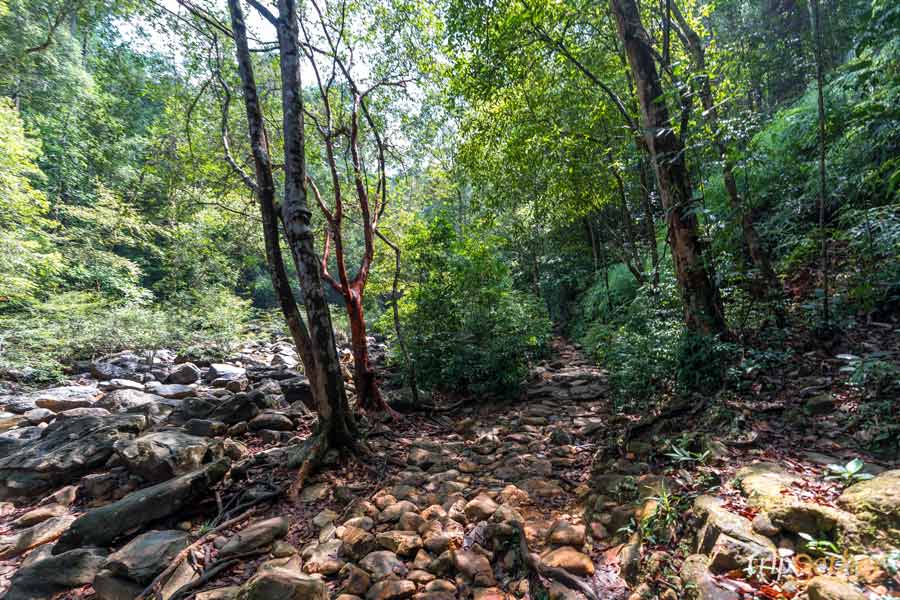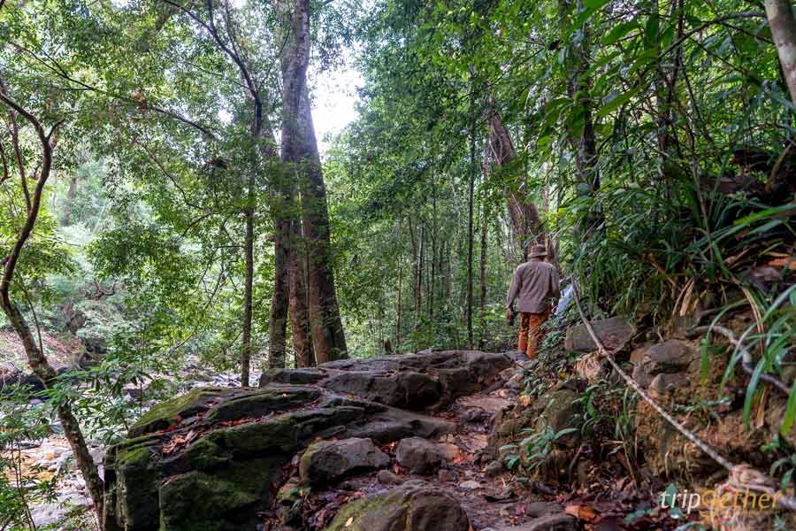 เส้นทางค่อนข้างมีหินเยอะ มีมอสปกคลุม เดินด้วยความระมัดระวัง