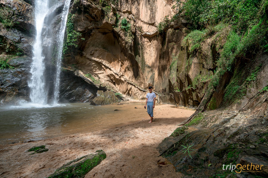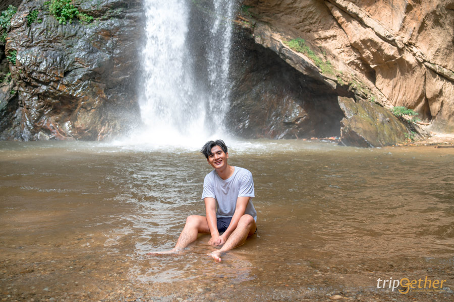 เมื่อมาถึงด้านใน เราก็จะพบกับเวิ้งหน้าผาที่มีสายน้ำตกไหลลงสู่แอ่งน้ำที่เป็นหาดทรายด้านล่าง บอกเลยว่าเป็นภาพที่สวยงามแบบสุดๆ