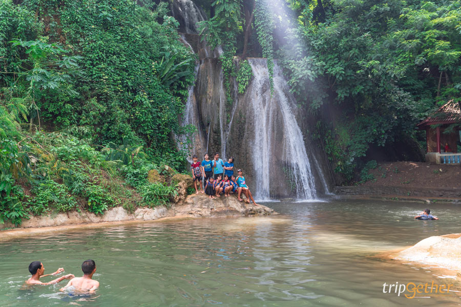 น้ำตกแม่กาษาสามารถลงเล่นน้ำได้ น้ำใสและเย็นสดชื่นมากๆ