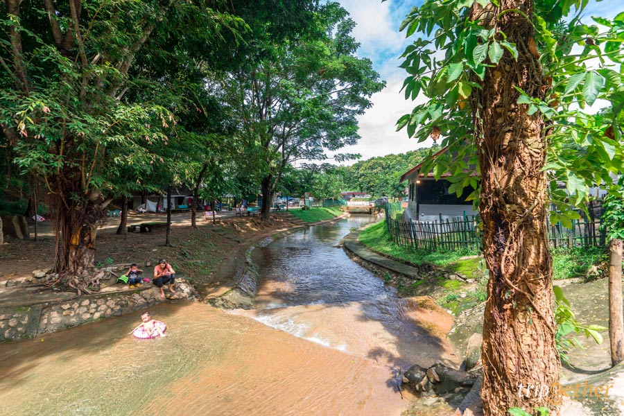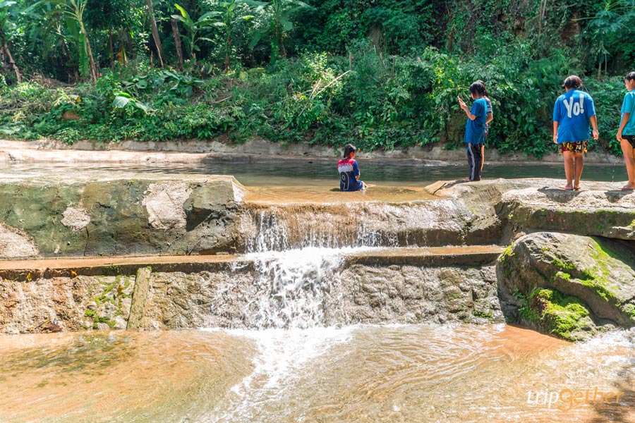 นั่งเล่นลำธารเย็นสบายแบบชิลล์ๆ เพราะน้ำตกแม่กาษามีพื้นที่เยอะมากๆ พักผ่อนได้เต็มที่