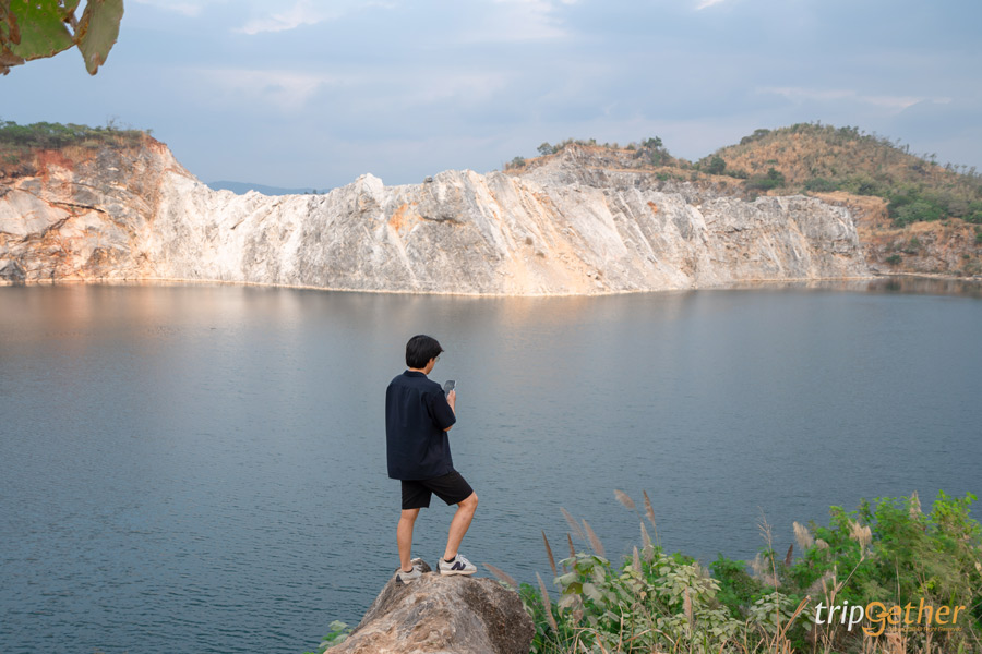 หนึ่งในมุมถ่ายรูปไฮไลท์ก็คือก้อนหินที่ยื่นออกมา แล้วมีฉากหลังเป็นภภาพภูเขาหินปูนสีขาวและผืนน้ำ พร้อมกับภาพของท้องฟ้าที่สดใส บอกเลยว่าเป็นอีกมุมที่มาต้องต้องไม่พลาดเลย รับรองว่าได้รูปสวยๆ ไว้อัปลงโซเชียลเพียบแน่นอน