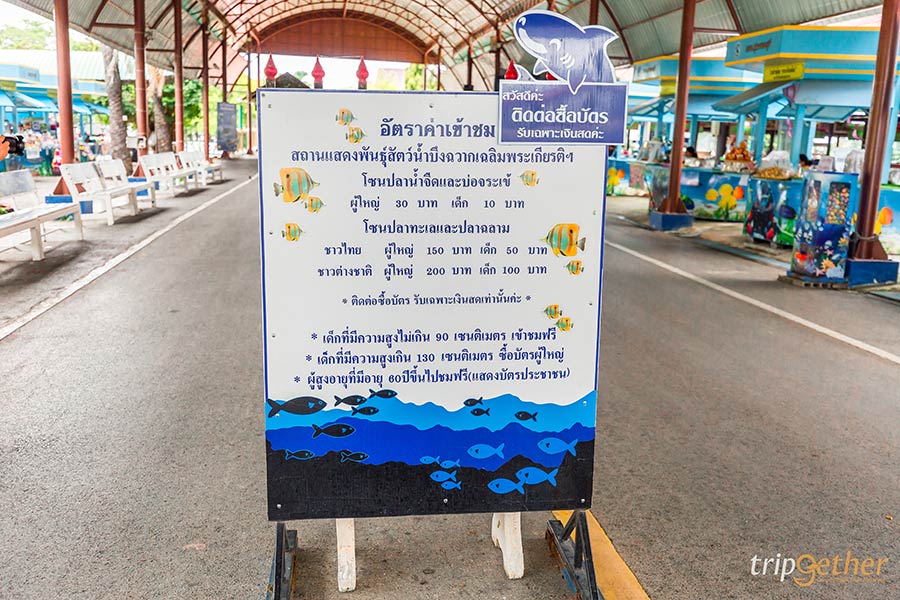 เมื่อมาถึงจะต้องซื้อตั๋ว 2 จุด คือ โซนปลาน้ำจืดและบ่อจระเข้ จุดนี้จะเป็นค่าเข้าชมที่ทุกคนต้องจ่าย ราคา 30 บาท ในขณะที่โซนสวรรค์แห่งโลกใต้ท้องทะเล สามารถเลือกได้ว่าเราจะจ่ายเพิ่มเพื่อเข้าไปดูอุโมงค์ปลาทะเลไหม ราคา 150 บาท และใครที่มาก็เตรียมเงินสดมาด้วยเพราะที่นี่รับแค่เงินสดเท่านั้น แต่ถ้าไม่ได้พกเงินมาจริงๆ สามารถไปขอแลกที่สหกรณ์ได้ (มีคิดค่าบริการเล็กน้อย)