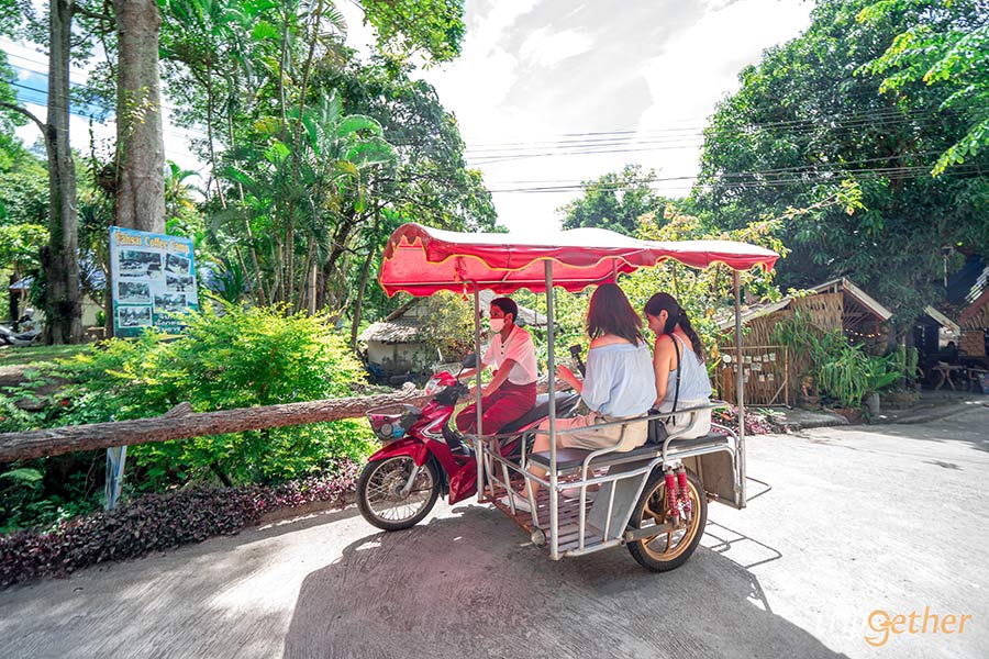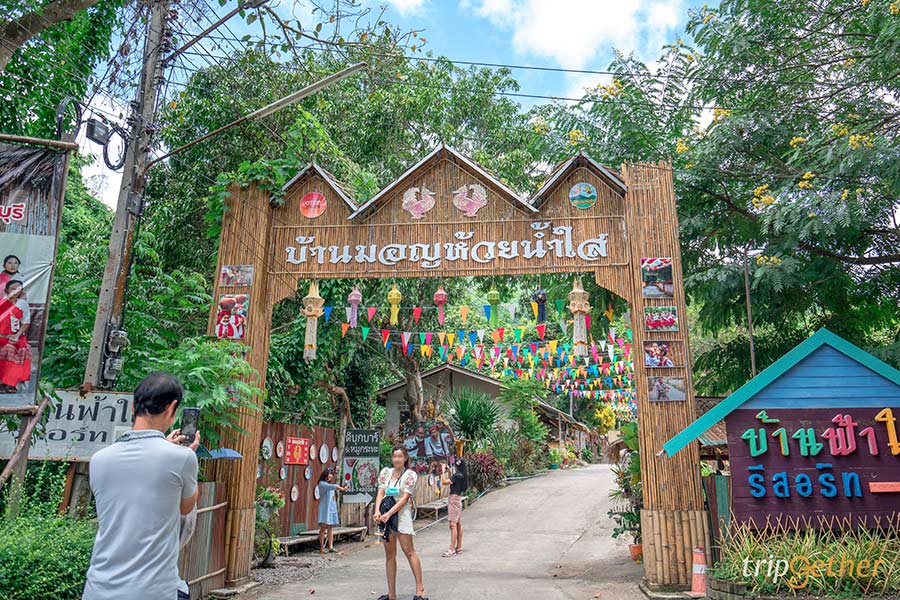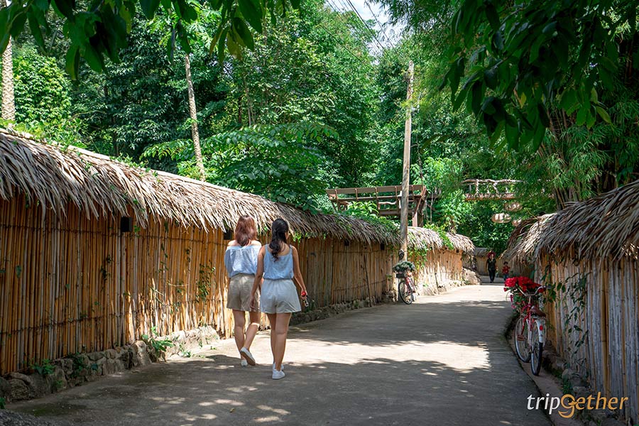 หมู่บ้านอยู่ท่ามกลางความกรีนของต้นไม้ใหญ่ บวกกับสองข้างทางมีรั้วไม้ไผ่ บรรยากาศเงียบสงบและร่มรื่นมาก เหมาะกับการมาเดินชิลล์ๆ และชาร์จพลังในวันหยุดมาก