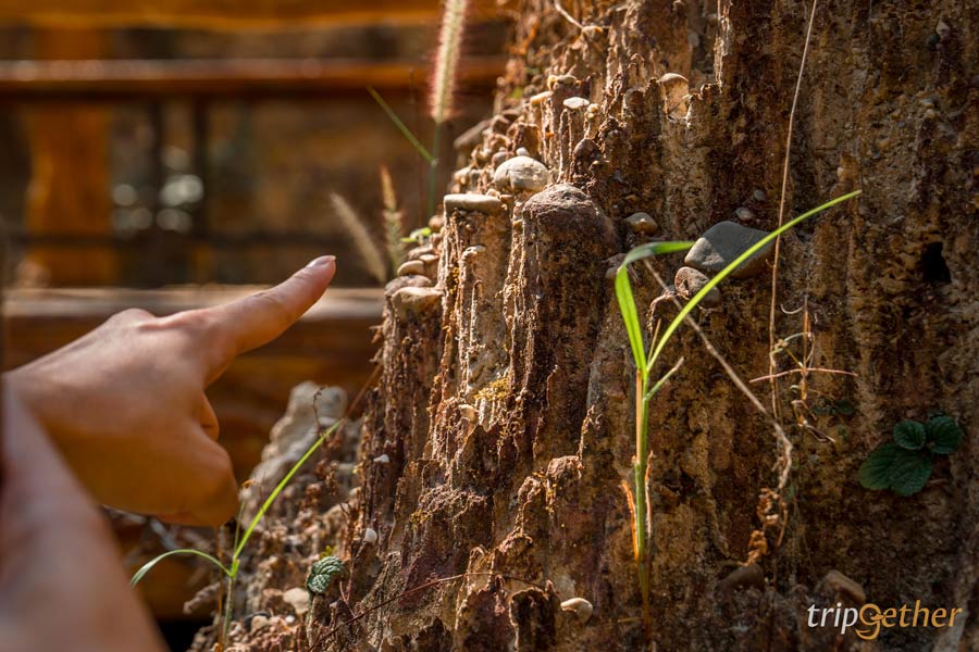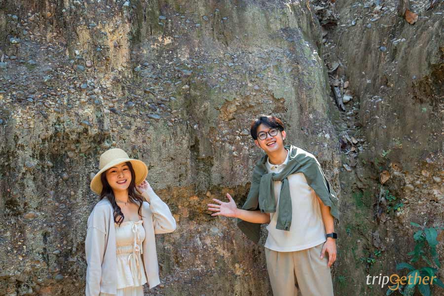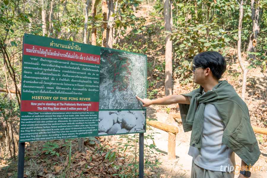 เพื่อนๆ สังเกตลวดลายของดินและหินจากหลักฐาน เชื่อว่าที่นี่นั้นเป็นเส้นทางของสายน้ำแม่ปิงเก่ากว่า 5 ล้านปีมาแล้ว ที่ได้พัดพาตะกอน กรวด หินน้อยใหญ่มาทับถมจากตะกอนที่สะสมตามเขาของแนวเทือกเขาถนนธงชัยกลาง ตอนปลายยุคเทอร์เชียรี เป็นสิ่งมหัศจรรย์ที่เพื่อนๆ เห็นนี่แหละครับ โดยหินแต่ละก้อนจะบดบังหน้าดิน เมื่อมีฝนตกหรือน้ำไหลผ่านจะไม่สามารถผ่านตัวหินได้โดยตรง แต่จะกัดเซาะพื้นดินโดยรอบ ภายหลังน้ำกัดเซาะ และชะล้างผิวหน้าดิน จึงเกิดเป็นหน้าผาที่มีความสวยงาม ทำให้ใต้หินนั้นเกิดเป็นเสาเล็กๆ คือจุดกำเนิดของ แกรนด์แคนยอนเมืองไทยอันยิ่งใหญ่