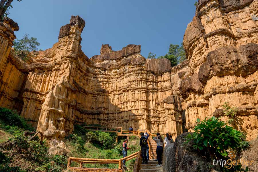 ด้านล่างของหน้าผา มีทางเดิน และบันไดทอดไปยังมุมต่างๆ ทำให้ที่นี่ไม่น่าเบื่อเลย แสงตกกระทบกับดินตะกอน ตัดกับสีท้องฟ้าได้มูทที่คล้ายกับ แกรนด์แคนยอน สวยงามเกินเรื่องเกินราวไปไกลเลย มีมุมผาน้อยใหญ่ และมีรายละเอียดที่แตกต่างกันไป มองไปทางไหนก็ตื่นเต้นไปหมด รู้สึกเหลือเชื่อ ที่นี่คือที่สุดของความสวยงามของธรรมชาติจริงๆ