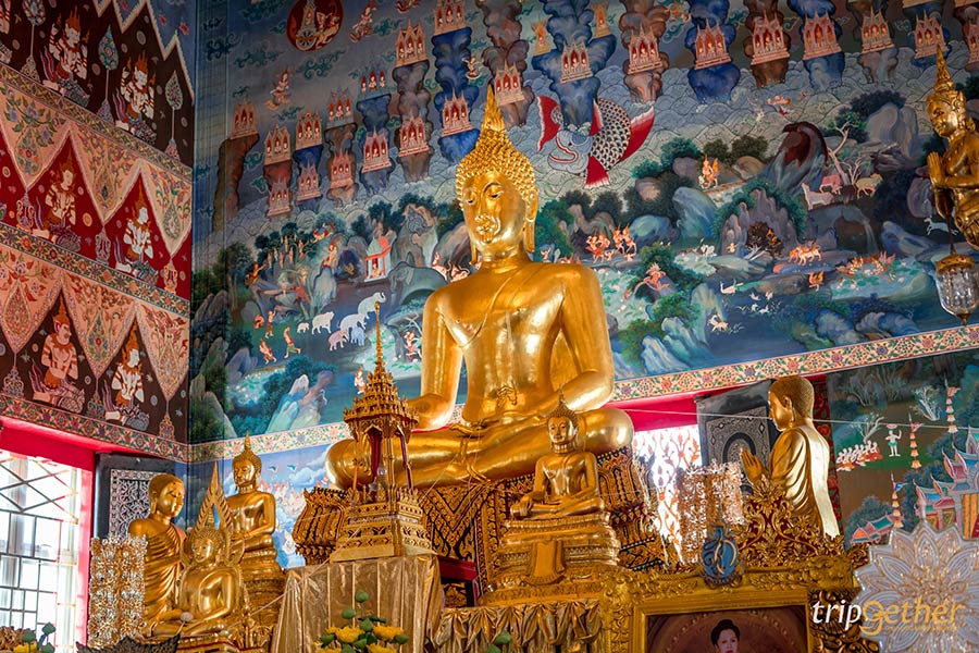 อนุเสาวรีย์ท้าวเวสสุวรรณ เป็นเทพสายความมั่งคั่งร่ำรวย การงาน และช่วยกำจัดอุปสรรคต่างๆ หลายคนที่มาขอพรกับท้าวเวสสุวรรณพรมักจะสัมฤทธิ์ผลจึงทำให้มีการบอกปากต่อปากจนเริ่มมีคนศรัทธาและนับถือท้าวเวสสุวรรณมากขึ้น วิธีการไหว้ท้าวเวสสุวรรณคือต้องใช้ธูป 9 ดอก และกุหลาบแดง 9 ดอก จะเตรียมไปเองหรือมาซื้อที่จุดบริการธูปเทียนของวัดก็ได้ตามสะดวกเลย