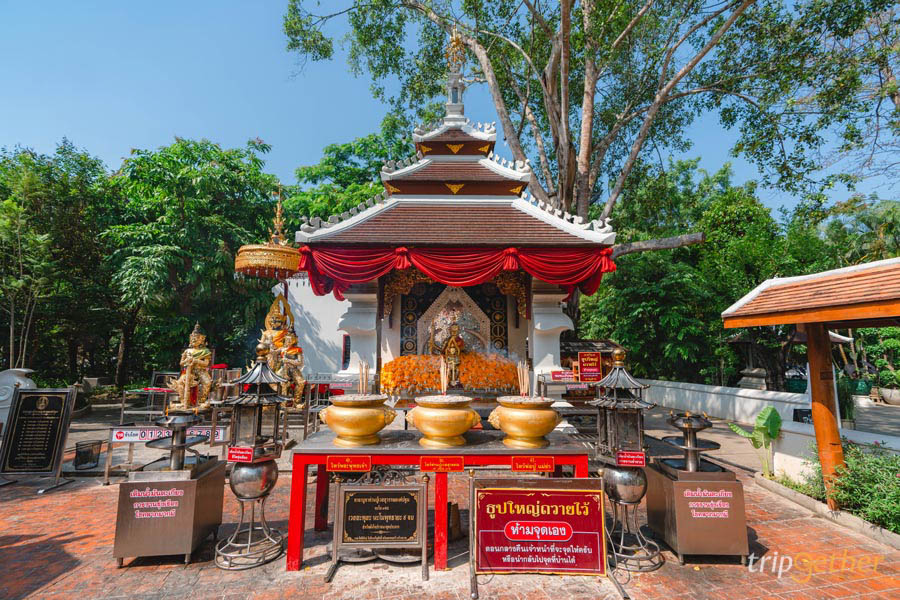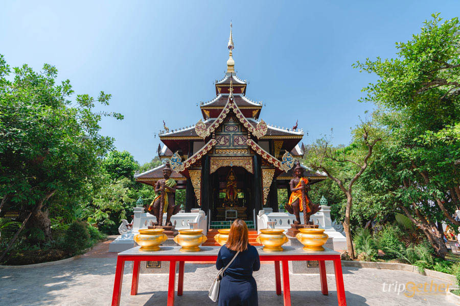 นอกจากนี้ยังมีอีกจุดหนึ่งที่มีองค์ท้าวเวสสุวรรณให้ได้กราบไหว้กัน โดยจุดนี้จะเป็นศาลารูปแบบสถาปัตยกรรมล้านนาสุดประณีต เรียกได้ว่าสวยงามสุดๆ