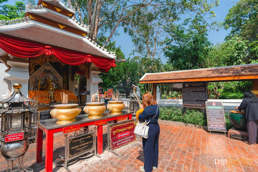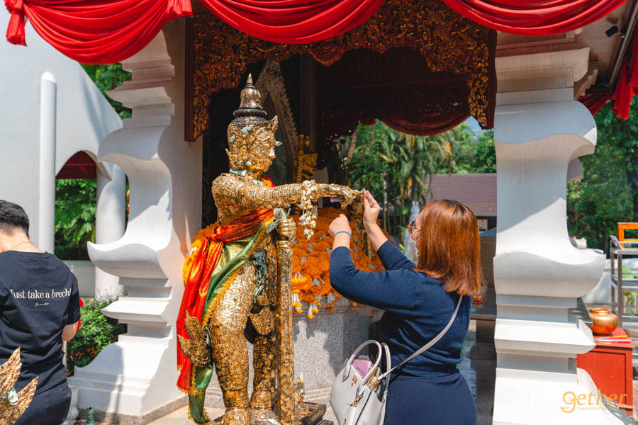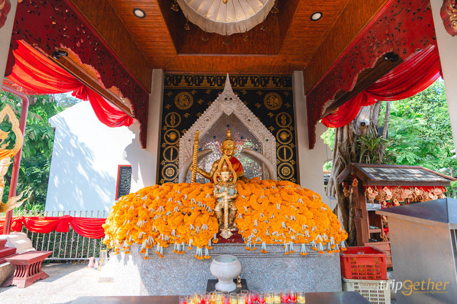 องค์ท้าวเวสสุวรรณในจุดนี้จะมีทั้งหมด 4 องค์ ซึ่งสามารถปิดทองได้ทุกองค์เลย และถ้าดูจากพวงมาลัยและแผ่นทองที่เต็มแน่นขนัด คงไม่ต้องสงสัยเลยว่าองค์ท้าวเวสสุวรรณของที่นี่มีผู้คนที่ศรัทธาแวะเวียนเข้ามากราบไหว้มากแค่ไหน