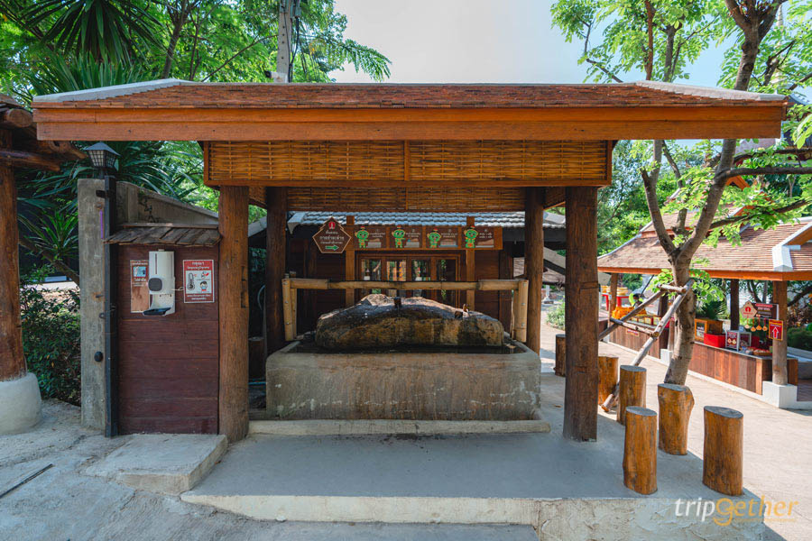 ทางเข้าสู่ม่อนกุเวรจะให้กลิ่นอายความเป็นญี่ปุ่น ด้วยสไตล์การตกแต่งอย่างเรียบง่ายด้วยไม้ เมื่อเดินทางมาถึงเราก็จะพบกับซุ้มชำระล้างตามความเชื่อของญี่ปุ่น โดยขั้นตอนแรกเราก็จะเริ่มด้วยการนำเหรียญวางไว้บนก้อนหิน แล้วตักน้ำด้วยกระบวยไม้ไผ่ล้างเหรียญ จากนั้นก็ล้างมือทั้งสองข้าง พร้อมคำนับแล้วตบมือหนึ่งครั้ง เพื่อเป็นการชำระล้างและขจัดสิ่งชั่วร้ายที่ติดตามเรามา ก่อนเข้าสู่สถานที่ศักดิ์สิทธิ์