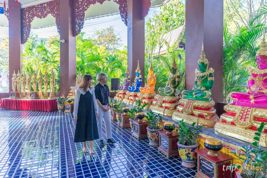 และอีกจุดไฮไลท์ที่โดดเด่นสวยงาม วิหารอริยมรรค 8 เหลี่ยม ไหว้ขอพร พญานาคทั้ง 4 ตะกูล ได้แก่ ตระกูลวิรูปักษ์ พญานาคตระกูลสีทอง ตระกูลเอราปัถ พญานาคตระกูลสีเขียว ตระกูลฉัพพยาปุตตะ พญานาคตระกูลสีรุ้ง ตระกูลกัณหาโคตมะ พญานาคตระกูลสีดำ บอกเลยว่าวิหารแห่งนี้สวยสดงดงามมากตั่งแต่ก้าวแรกที่ไปถึงเลย