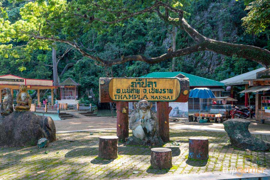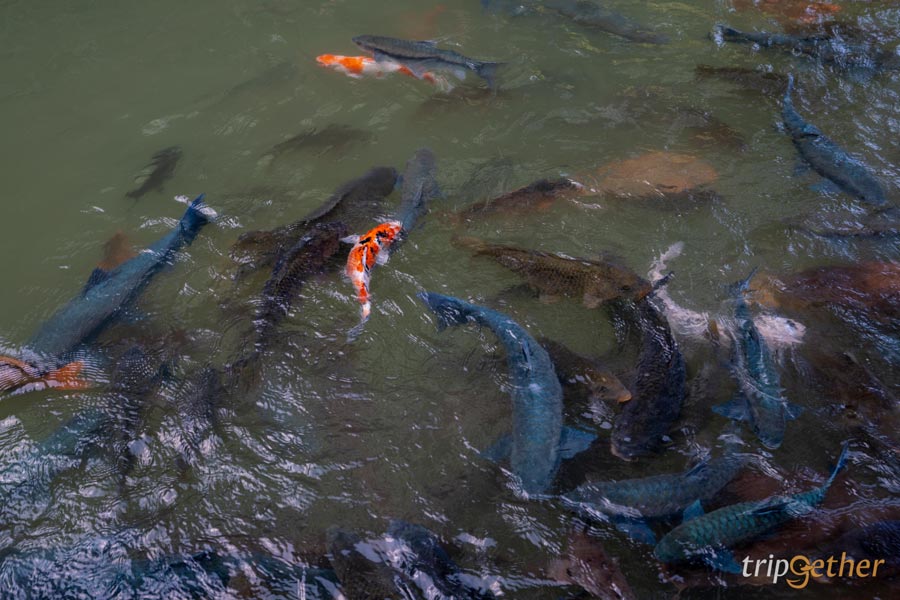 นอกจากนี้บริเวณทางขึ้นถ้ำเปลวปล่องฟ้า ยังมีลำธารเล็กๆ ที่น้ำไหลออกจากใต้หอนภูเขาหินปูน และที่นี่ยังมี ปลาพวงเงิน ปลาไม้หีบ และปลาอีกหลากหลายชนิดจำนวนมากแหวกว่ายไปมา สามารถมองเห็นได้ชัดเจนเลยล่ะ จุดนี้เราสามารถให้อาหารปลาได้ด้วยนะ ถ้าเพื่อนๆ มีโอกาสมาเที่ยวเชียงราย ขอแนะนำให้ที่นี่เป็น 1 ในลิสต์ที่ต้องมาเที่ยวชมสักครั้ง