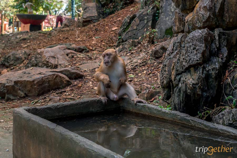 บริเวณทางเข้าถ้ำจะมีลิงภูเขาอาศัยอยู่เยอะมาก และจุดนี้ก็จะมีร้านขายอาหารลิงและให้เช่าไฟฉายอันละ 20 บาท แต่แอบกระซิบว่าให้ระวังเหล่าน้องลิงกันด้วยนะ เพราะน้องๆ ค่อนข้างซุกซนเลยทีเดียว