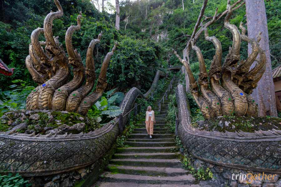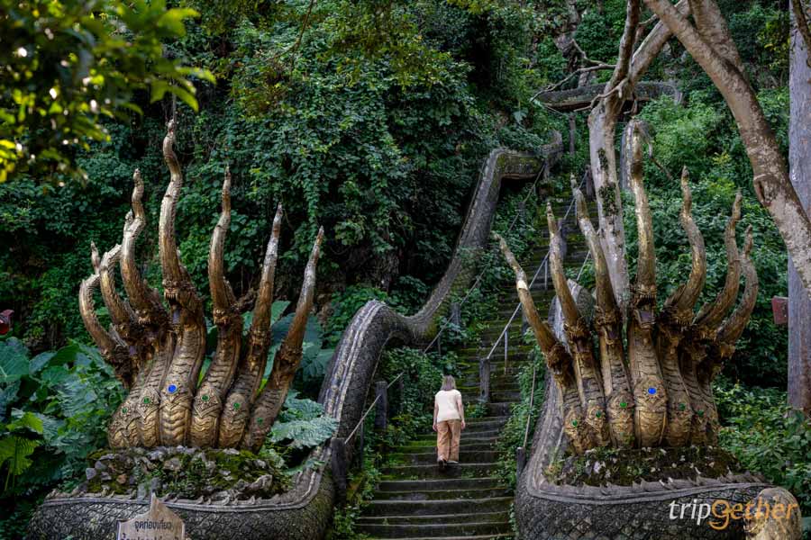 วัดถ้ำปลา เชียงราย เดินเที่ยวชมถ้ำ บันไดพญานาคสุดอลังการ