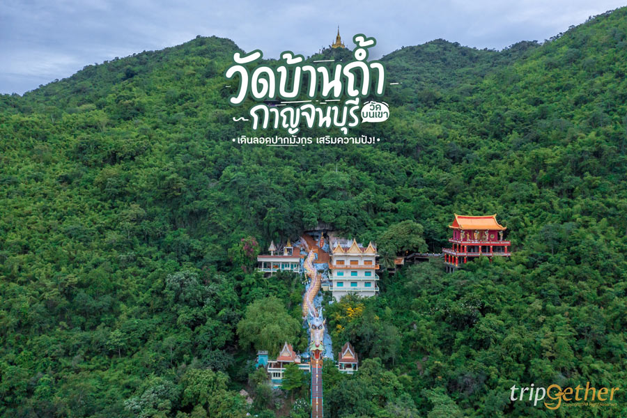 วัดบ้านถ้ำ กาญจนบุรี วัดบนเขา เดินลอดปากมังกร เสริมความปัง!