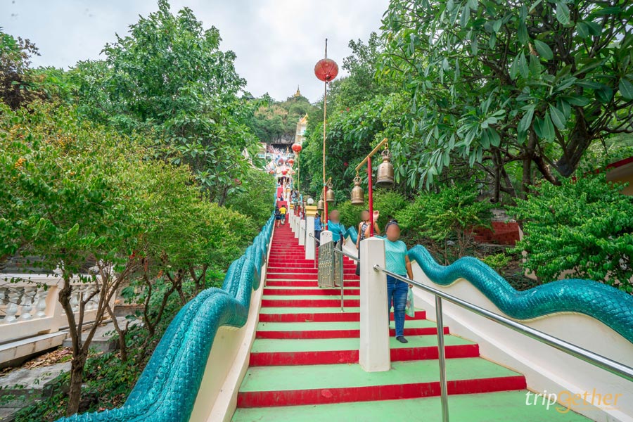 เริ่มเดินจากบันไดพญานาคถึงหัวมังกร มีบันไดประมาณ 114 ขั้น