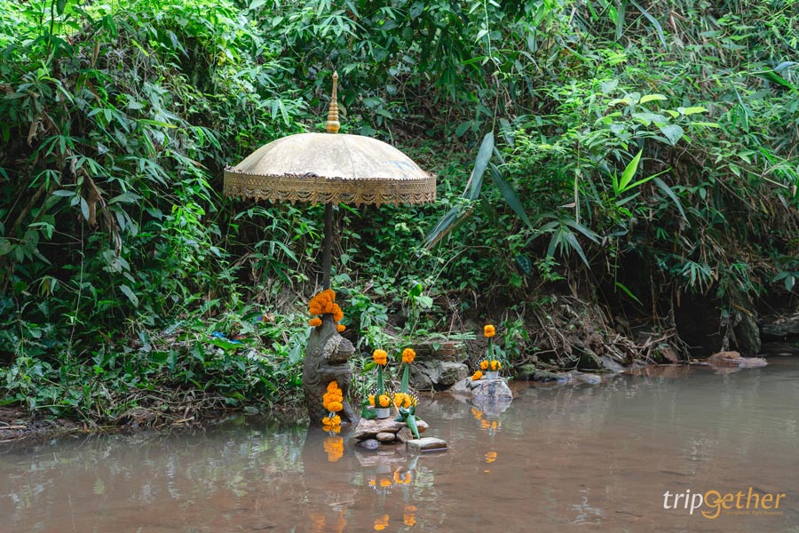 ที่วัดผาลาดหากนำอาหารติดตัวมา หากเป็นเนื้อไม่ว่าสุกหรือดิบจะไม่สามารถเอาผ่านวัดนี้ไปได้ มักจะมีอาการปวดหัว ปวดท้อง ต่อมาภายหลังมีชาวไทยใหญ่หลบภัยสงครามมาอยู่ที่ถ้ำผาลาดนี้ จึงพากันสร้างพระพุทธรูปไว้สักการะ และป้องกันภัย และยังมีบ่อน้ำทิพย์ สันนิษฐานว่าครั้งที่หนึ่งสร้างขึ้นโดยชาวสุโขทัยร่วมกับพระเจ้ากือนา เพื่อเอาน้ำไว้กิน อาบ เป็นวิธีโบราณของสมัยก่อน
