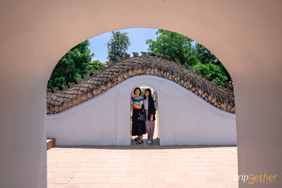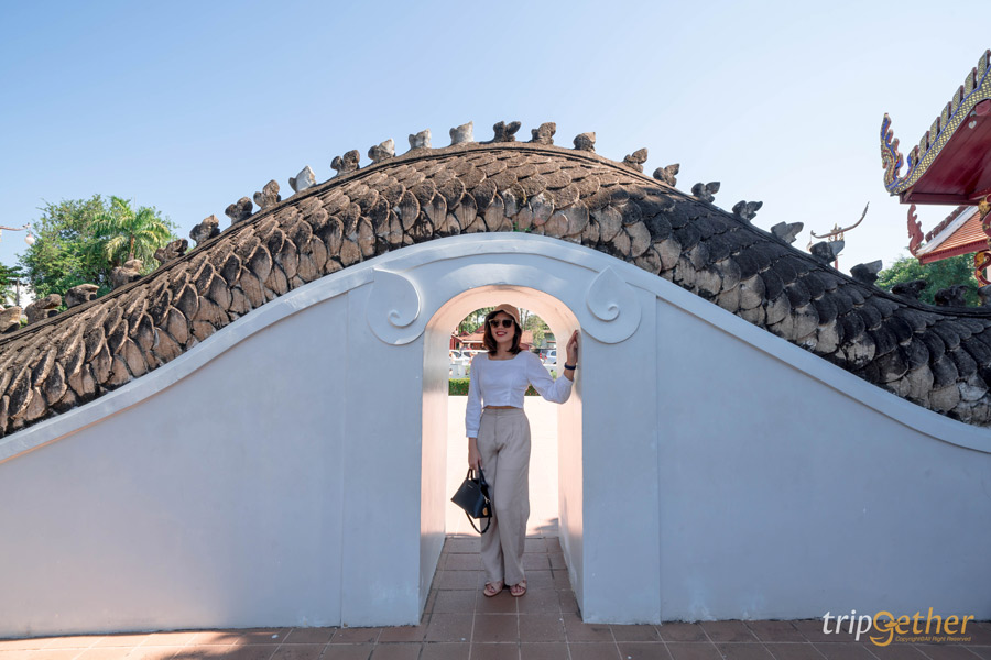 ตามลำตัวของพญานาคยังมีซุ้มประตูเล็กๆ ให้ใช้เป็นมุมถ่ายรูปและให้ได้เดินลอดผ่าน โดยเชื่อกันว่าหากใครได้เดินลอดซุ้มประตูพญานาคนี้จะมีโอกาสได้กลับมาเยือนที่น่านอีกครั้ง ใครที่มีแพลนจะมาเที่ยวจังหวัดน่าน ต้องไม่พลาดที่จะแวะมาเยี่ยมชมความสวยงามของแลนด์มาร์กเมืองน่านกันที่วัดภูมินทร์กันนะ