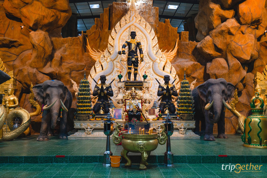 บริเวณภายในถ้ำมีพื้นที่กว้างขวาง ซึ่งด้านหลังขององค์พระประธาน เป็นพื้นที่ของคลังมหาสมบัติที่เต็มไปด้วยเครื่องประดับ ไม่ว่าจะเป็นทอง เพชร พลอย และมุก บอกเลยว่าตระการตามากๆ