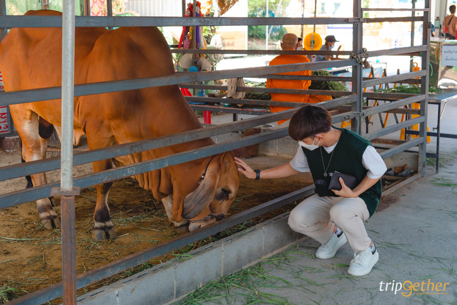 นอกจากนี้ในบริเวณวัดยังมีจุดทำบุญอีกเพียบ อย่างการให้หญ้าโค-กระบือ จะบอกว่าเจ้าโคตัวนี้เชื่องมากๆ และสวยมีสง่าสุดๆ