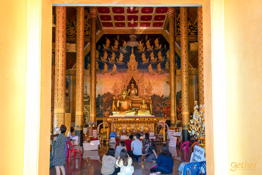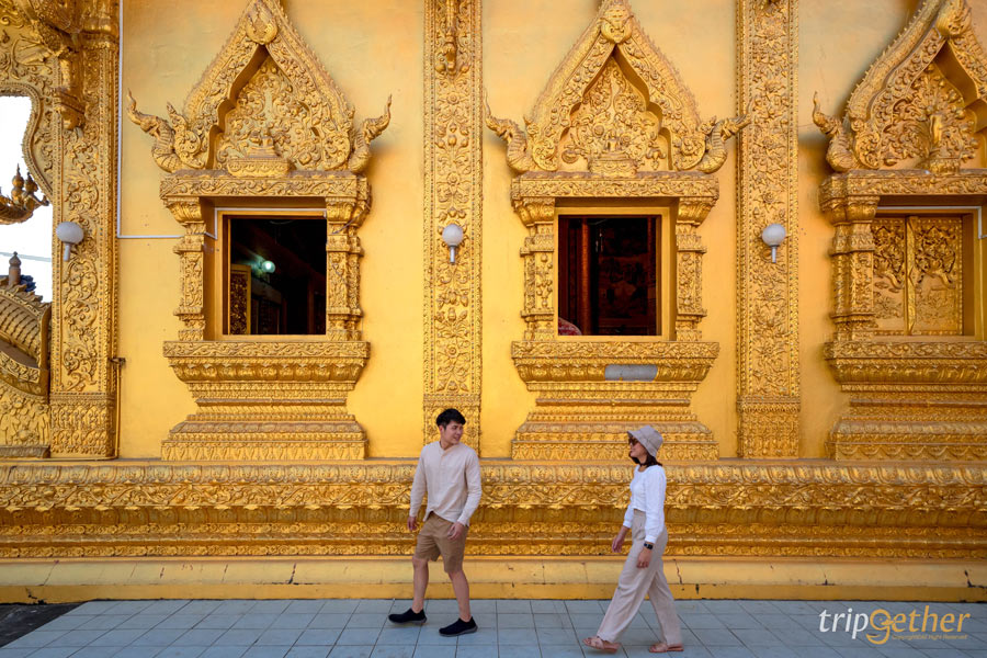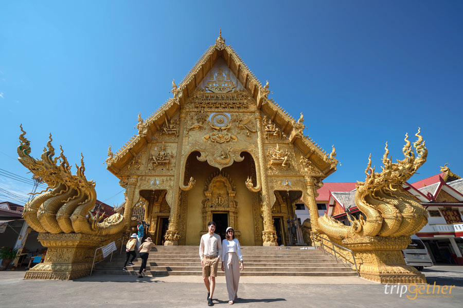 นอกจากนี้ด้านข้างของวิหารยังมีความสวยงามให้ได้เดินชมกันแบบเพลินๆ ไม่ว่าจะเป็นซุ้มประตู ซุ้มหน้าต่าง ที่มีลวดลายพญานาค พร้อมกับพระพุทธรูปประดิษฐานอยู่เหนือประตู และบานประตูหน้าต่างยังเป็นงานไม้แกะสลักเป็นลวดลายดอกไม้และเรื่องราวต่างๆ