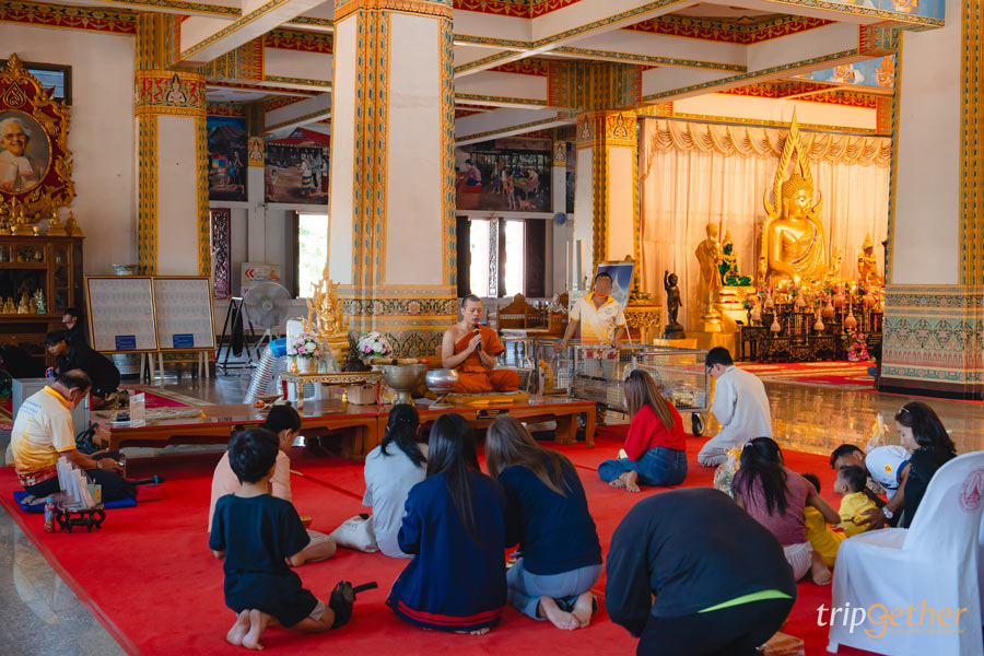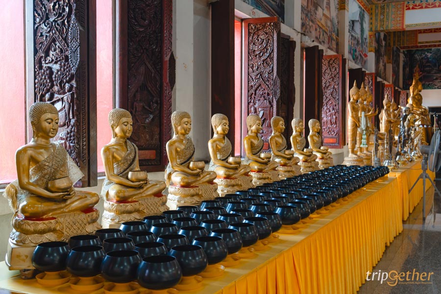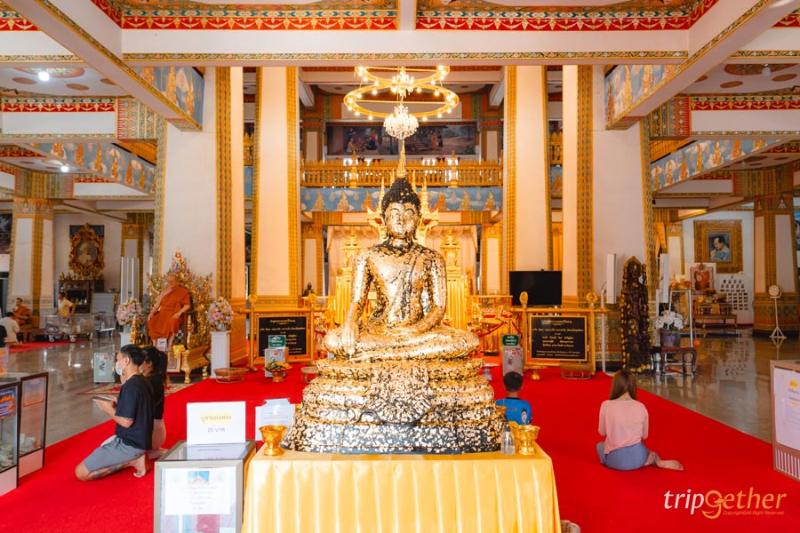 บริเวณรอบๆ โถงยังมีพระพุทธรูปปางต่างๆ รวมทั้งพระอัครสาวกให้ได้กราบสักการะและทำบุญเพื่อความเป็นสิริมงคล อีกทั้งยังมีจุดสำหรับถวายสังฆทานตั้งอยู่ภายในถัดจากพระบรมสารีริกธาตุให้ได้ทำบุญอีกด้วย