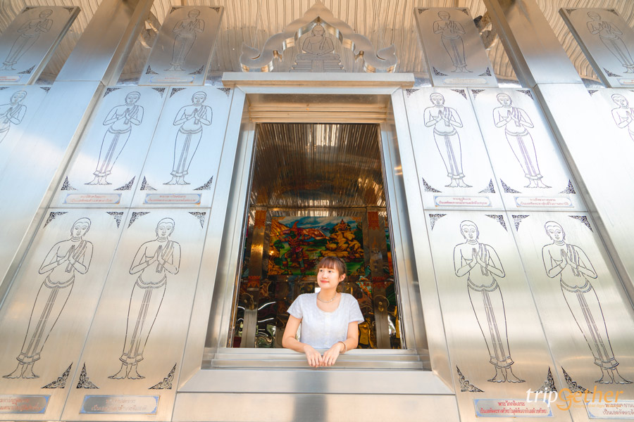 ด้านข้างของโบสถ์ยังมีภาพของพุทธสาวกนับร้อยๆ องค์อยู้อีกด้วย แอบกระซิบเลยว่ามุมหน้าต่างโบสถ์ถ่ายรูปสวยมากๆ
