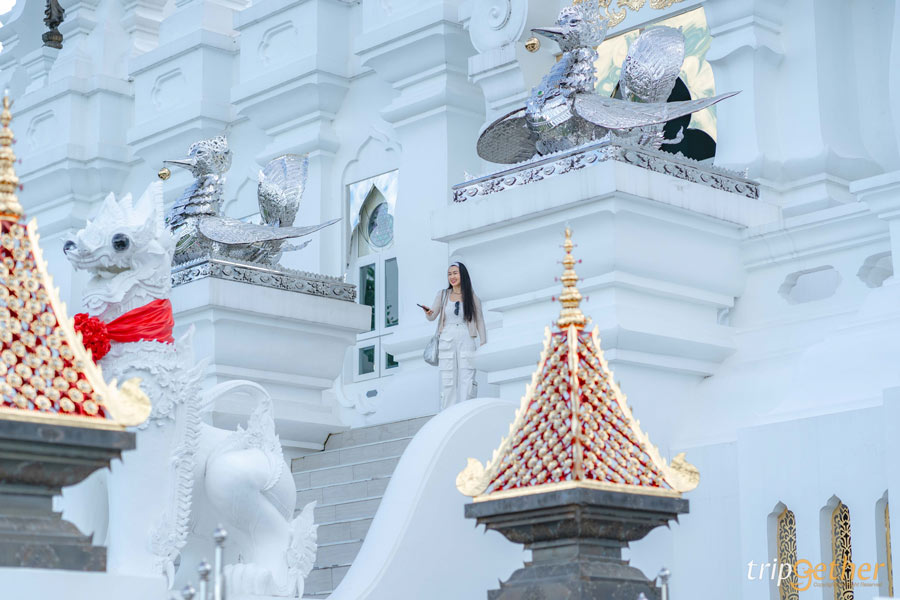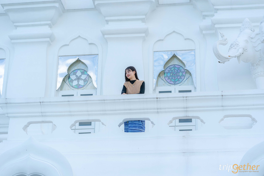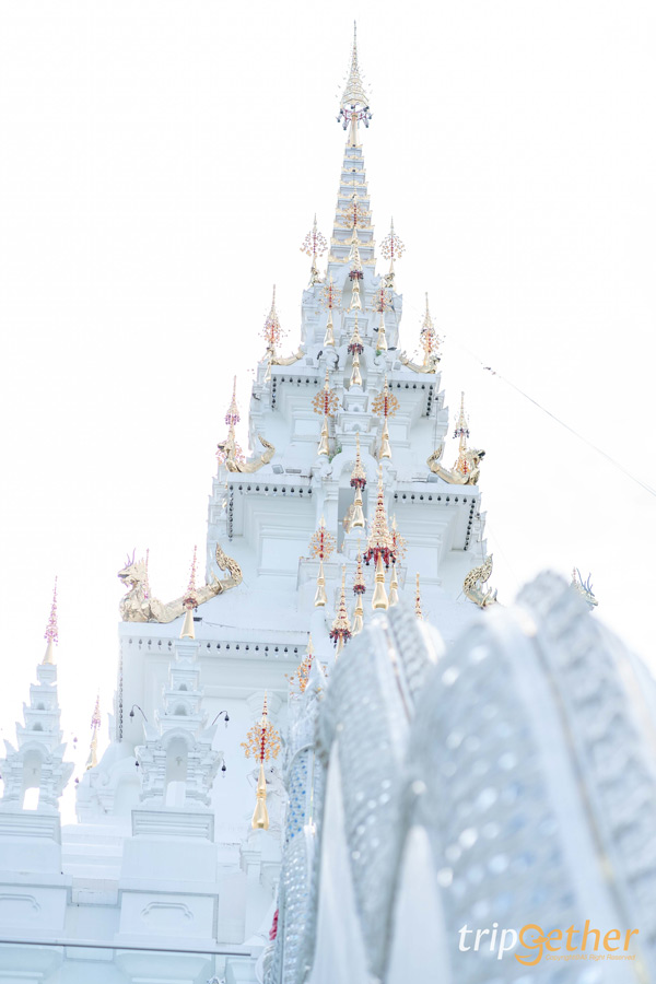 ตัวปราสาทเป็นสีขาวบริสุทธิ์ตัดกับสีทองอย่างดงาม