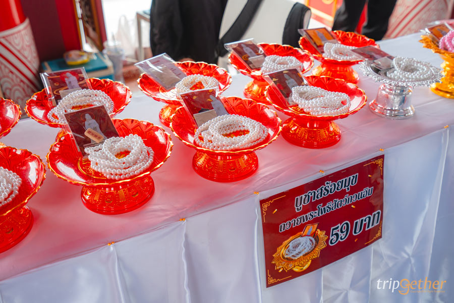 ภายในวิหารยังมีจุดจำหน่ายสร้อยไข่มุกสำหรับผู้ที่ศรัทธาอยากสักการะขอพรพระโพธิสัตว์กวนอิมให้บริการ โดยอยู่ที่ชุดละ 59 บาท ซึ่งมีทั้งสร้อยไข่มุกและธูปเลขมงคล รวมทั้งยังมีชุดดอกไม้ธูปเทียนจำหน่ายให้เพิ่มเติมอีกด้วย