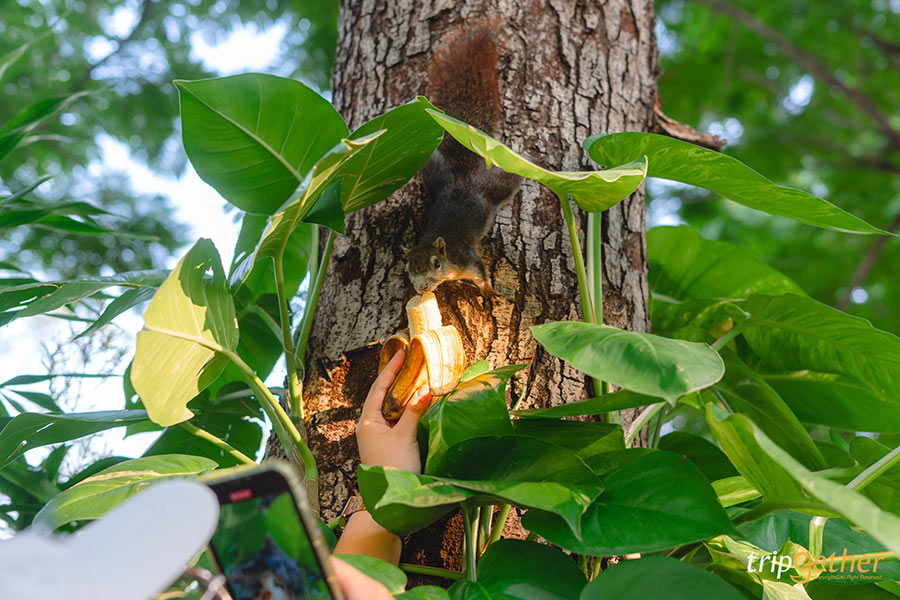 สายโซเชียลห้ามพลาดคอนเทนต์น่ารักๆ ด้วยการให้อาหารกระรอก ในสวนจตุจักรมีกระรอกเยอะมาก และที่สำคัญกระรอกเหล่านี้แสนรู้ด้วย ถ้าเห็นคนยื่นอาหารมาให้ น้องก็จะค่อยๆ เดินลงมาหาของกิน สำหรับอาหารนี้ต้องเตรียมมาเอง และควรเป็นอาหารสำหรับกระรอกโดยเฉพาะ อย่างผลไม้ ผัก ธัญพีช และถั่วต่างๆ แอบกระซิบว่าเม็ดมะม่วงหิมพานต์คือของโปรดเลยละ