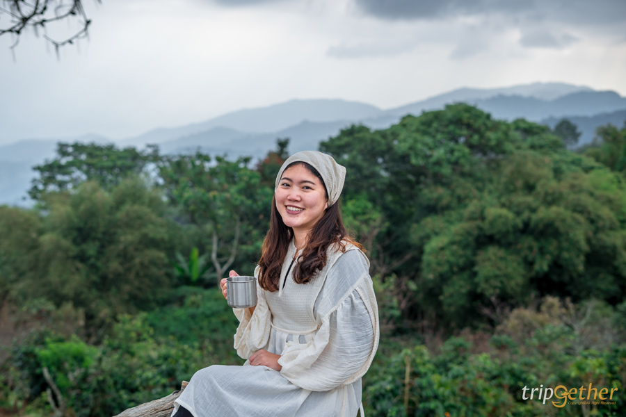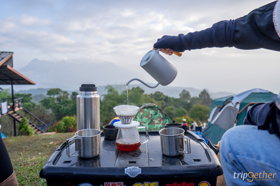 ดริปกาแฟท่ามกลางวิวทิวเขาเข้ากันมาก นั่งจิบกาแฟร้อนๆ ดีต่อใจ