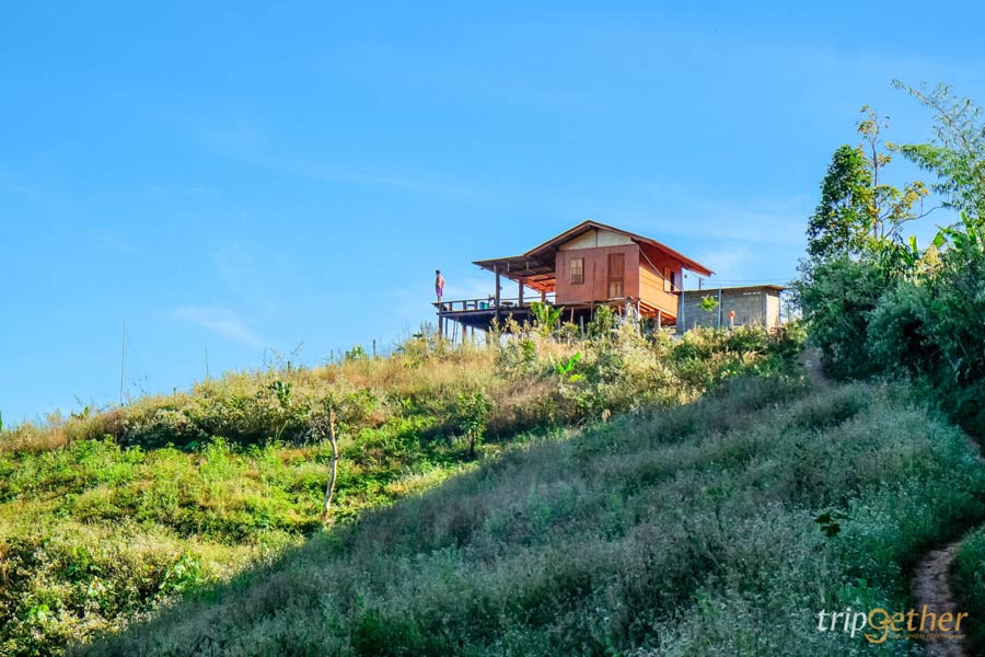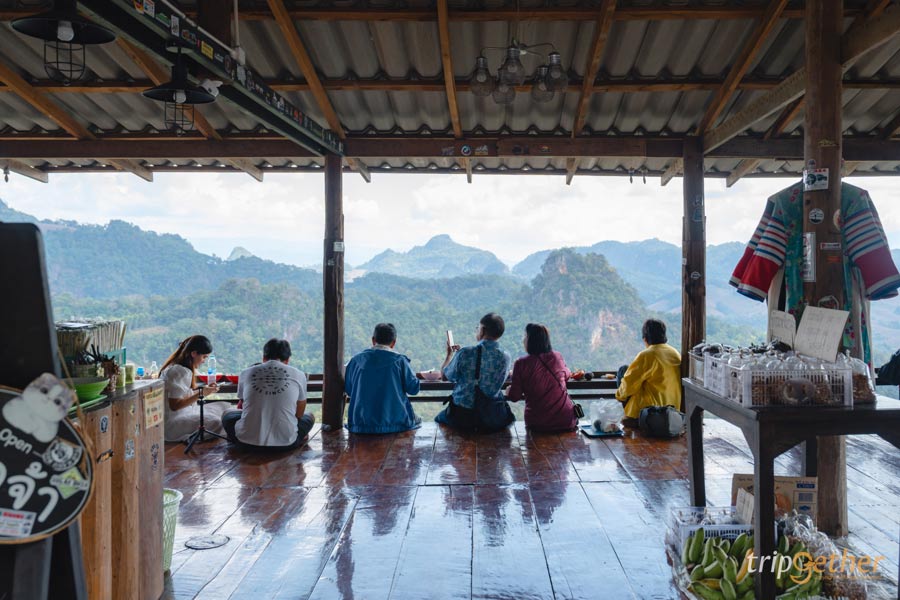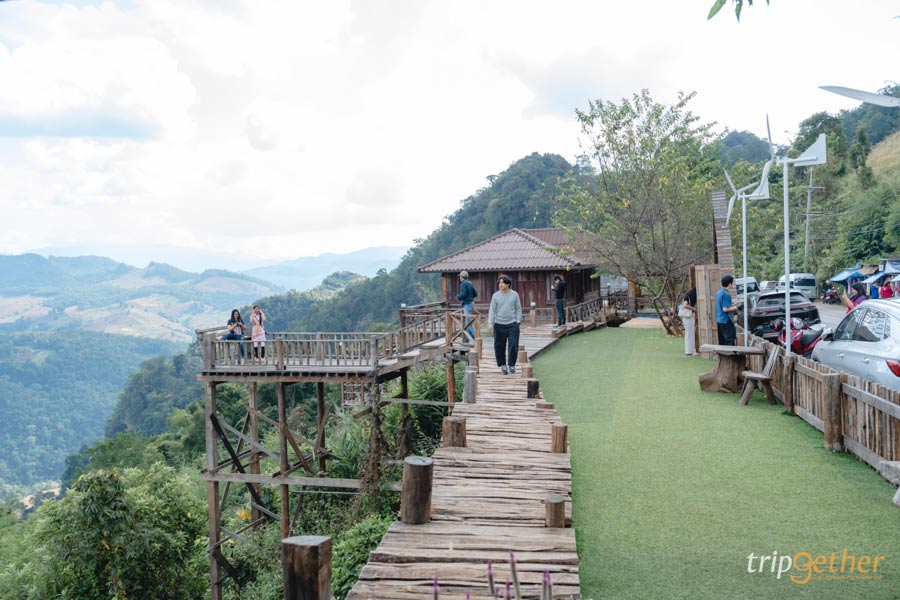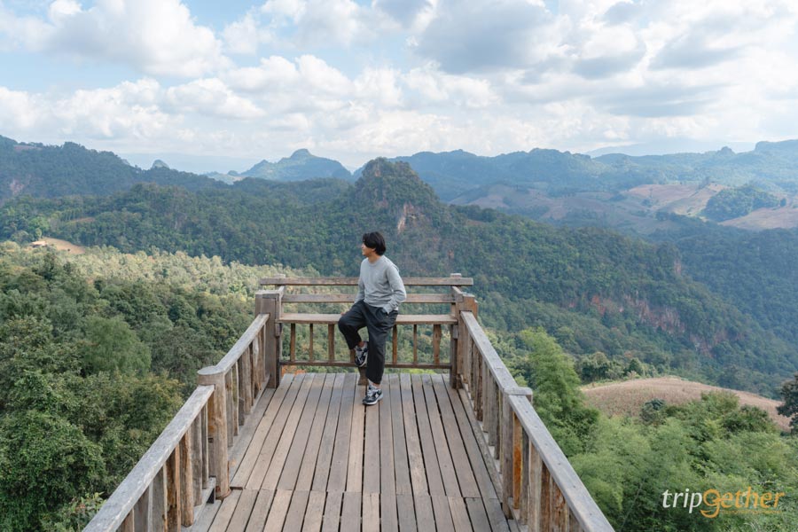 มองเห็นวิว 180 องศา เบื้องหน้าคือภูเขาเขียวๆ และบางวันยังมีหมอกลอยฟุ้ง ตัดกับแสงแดดอ่อนๆ เป็นภาพที่ชวนให้ใจฟูมาก