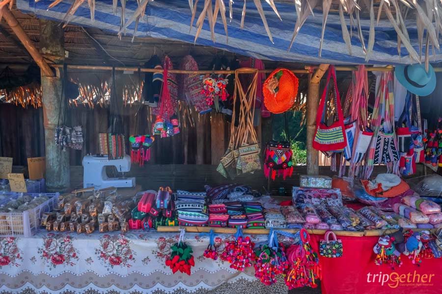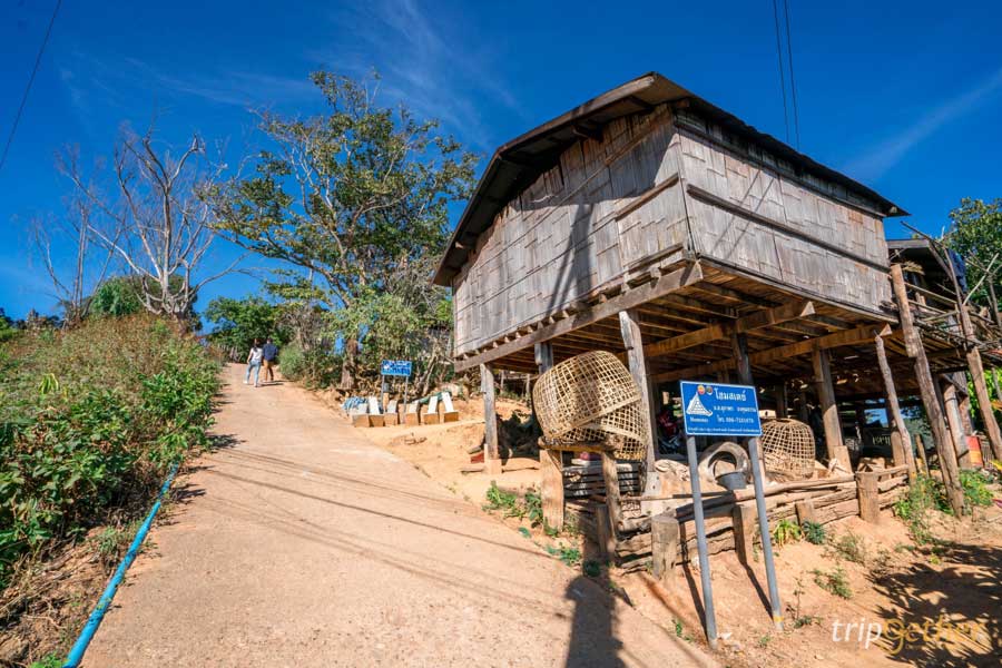 ภายในหมู่บ้านทั้งสองฝั่งถนนเป็นบ้านเรือนไม้แบบชาวเขาดั้งเดิม