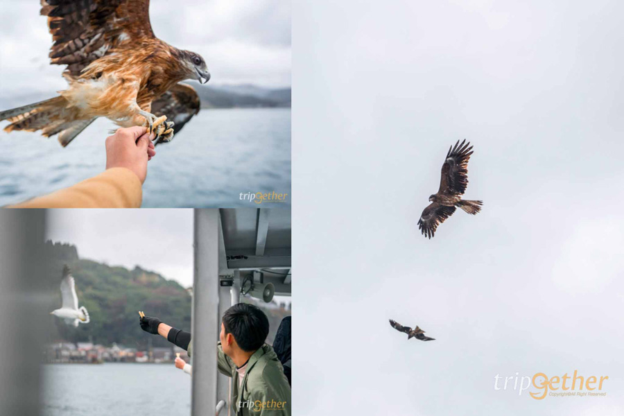 สามารถให้เป็นอาหารนกนางนวลที่บินอยู่รอบๆ อ่าวได้อีกด้วย น้องจะบินมาโฉบถึงมือเราเลย