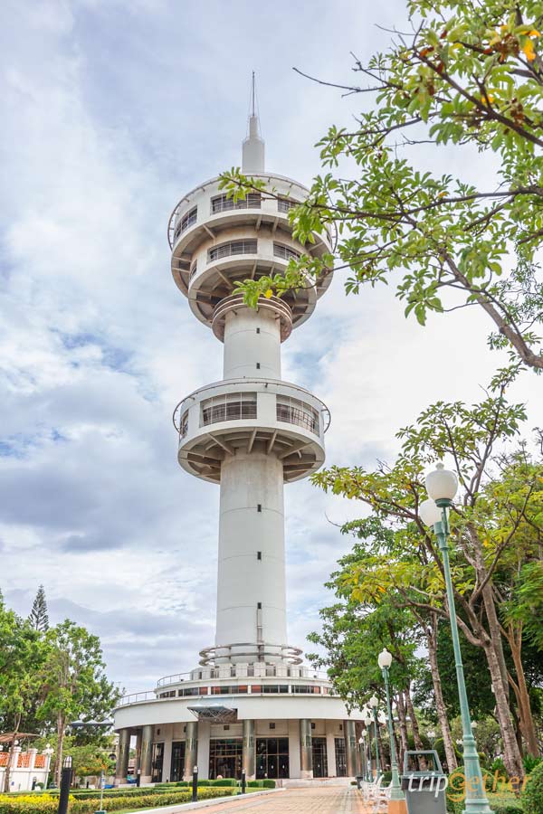 หอคอยบรรหาร – แจ่มใส แห่งนี้มีความสูงถึง 123.25 เมตร มีชั้นสำหรับชมวิวที่สูงกว่า 78 เมตร ซึ่งบนหอนั้นมีการติดตั้งกล้องส่องทางไกลไว้รอบด้านไว้เพื่อส่องชมรอบเมืองสุพรรณบุรีได้ โดยหอคอยใช้บนสุดนั้นเทียบเท่ากับตึก 72 ชั้นเลยล่ะ ทำให้เห็นวิวเมืองสุพรรณได้กว้างมาก
