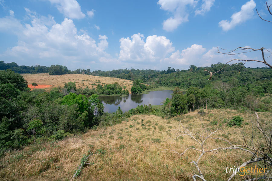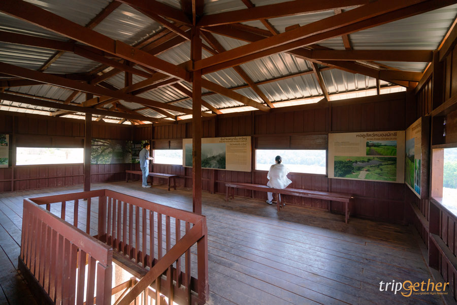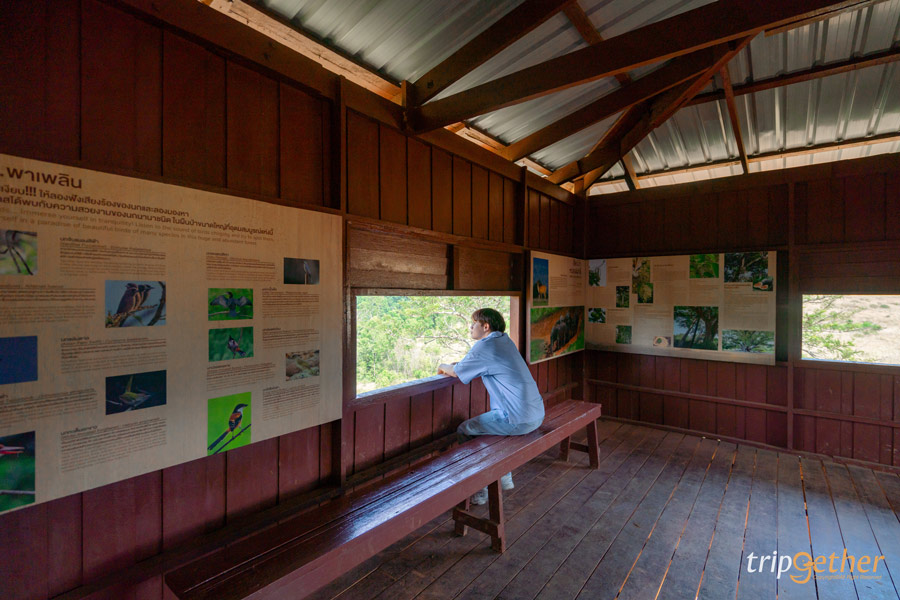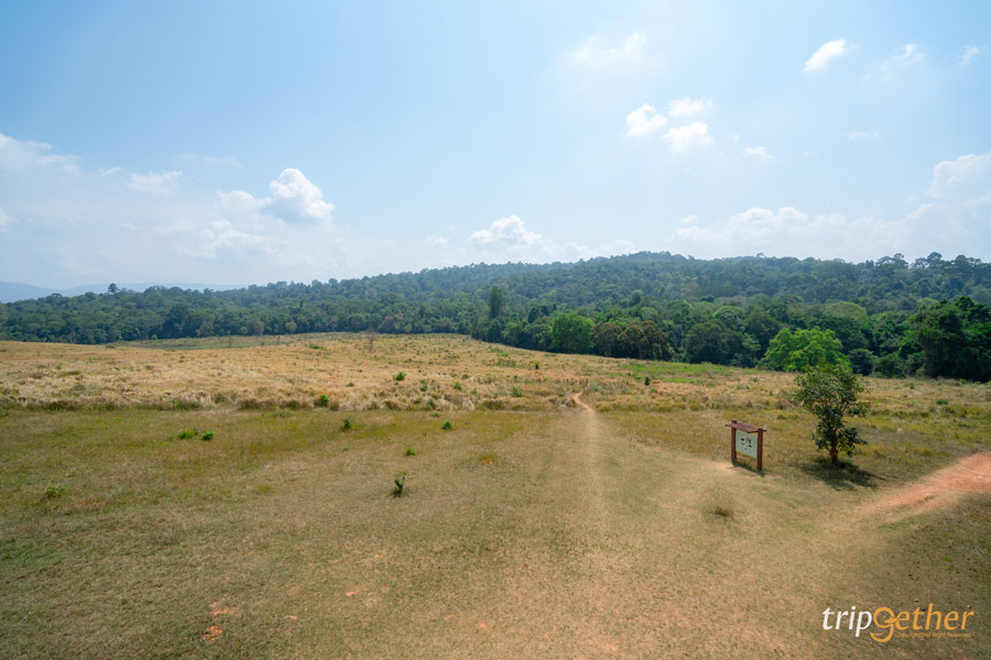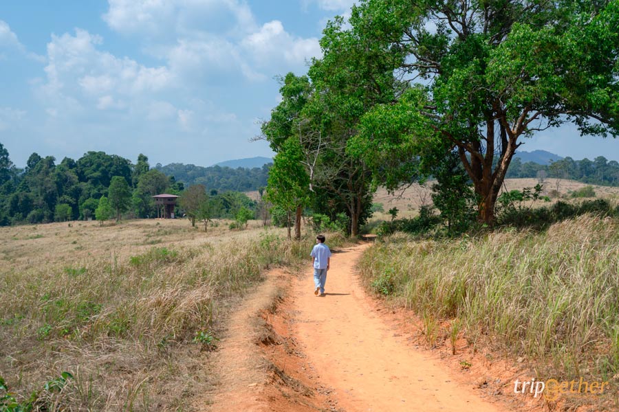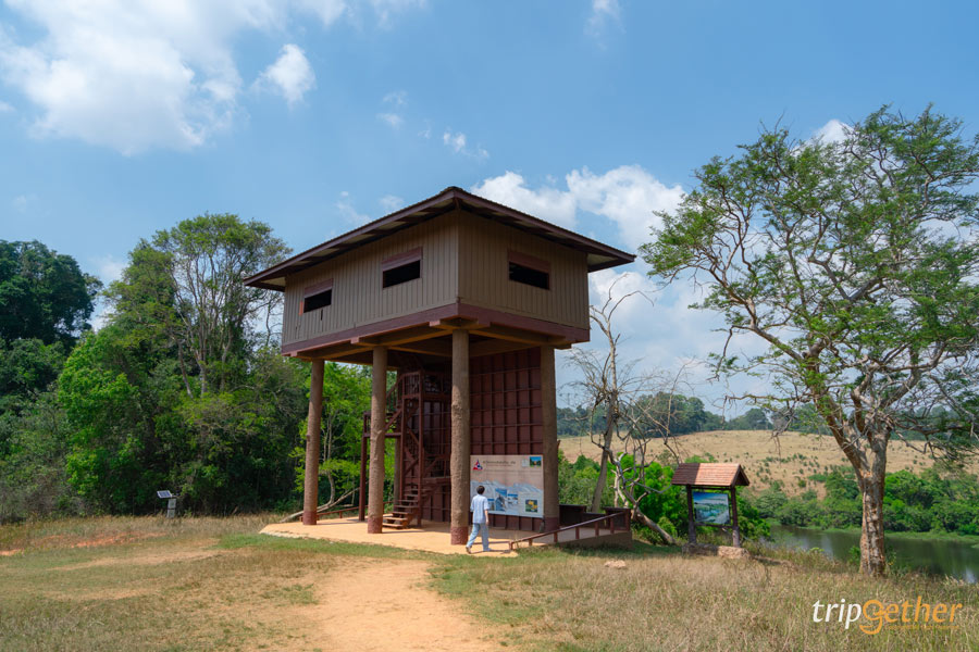 เดินมาได้ราวๆ 15 – 20 นาทีก็จะผ่านเนินเล็กๆ ก่อนจะมองเห็นหอดูสัตว์ตั้งอยู่ไม่ไกล โดยหอดูสัตว์จะตั้งอยู่ติดกับชายแนวป่าด้านริมสุดของบริเวณทุ่งหญ้าโล่ง