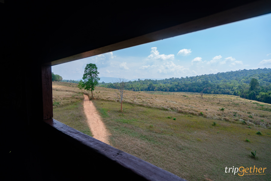 ภาพวิวจากบนหอดูสัตว์มองเห็นความสวยงามของทุ่งหญ้าโล่งได้แบบชัดเจน พร้อมกับวิวภูเขาใหญ่ที่ตั้งเป็นฉากด้านหลังตัดกับท้องฟ้าอยู่ไกลๆ อีกด้วย บอกเลยว่าถ้าได้นั่งแล้ว สบายจนไม่อยากลุกเลยทีเดียว