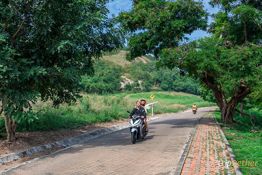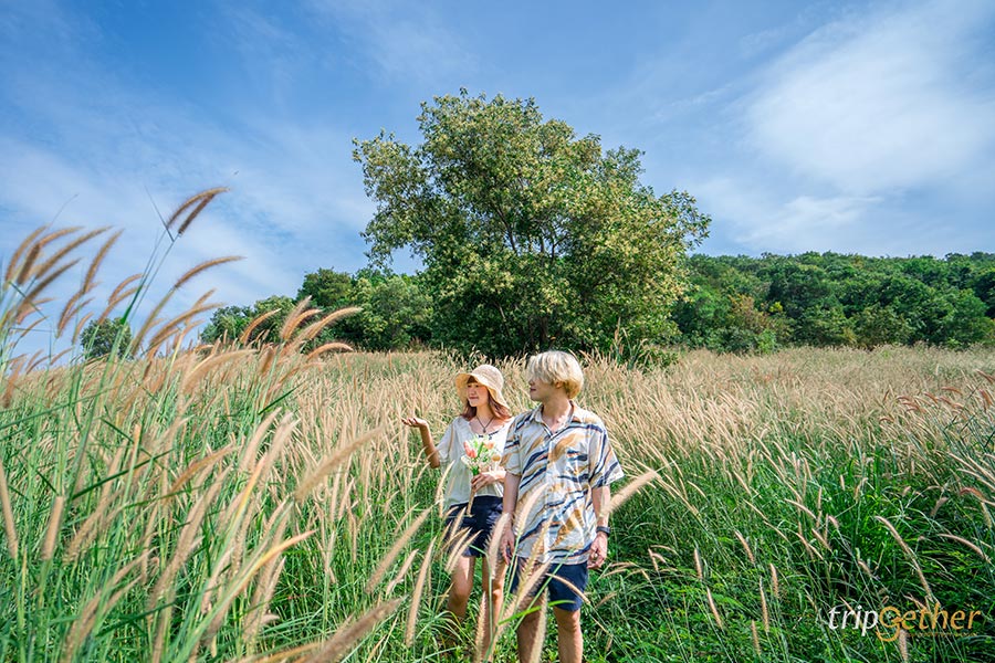 นอกจากนี้อีกหนึ่งไฮไลท์ก็คือระหว่างทางมาหาดนวลจะมีทุ่งหญ้าสวยๆ ให้ถ่ายรูปซึ่งสายถ่ายรูปอย่างเราจะพลาดได้ไง ขอจอดรถแล้วลงไปโพสท่าถ่ายรูปกันสักนิดนึง