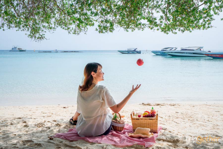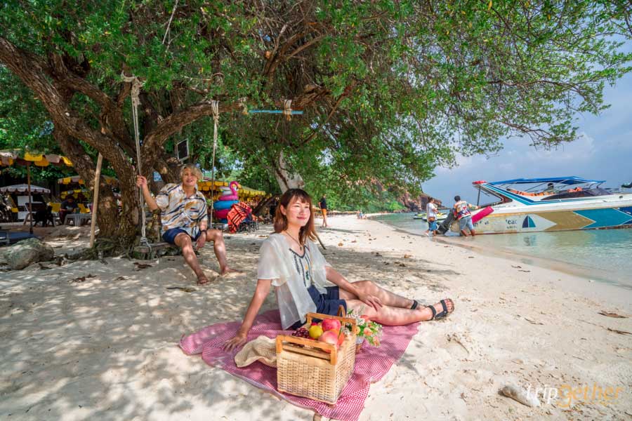 บริเวณชายหาดนั้นจะมีร่มเงาไม้ตามบริเวณต่างๆ เหมาะกับการนำผ้ามาปู นั่งรับลมสบายๆ หรือสายคอนเทนต์ก็ลองทำเป็น beach picnic ชิคมากๆ อีกทั้งยังมีร้านขายของกิน ขายอุปกรณ์ว่ายน้ำ เครื่องดื่มต่างๆ ถ้าใครหิวก็สามารถเดินขึ้นมาสั่งของกินได้เลย