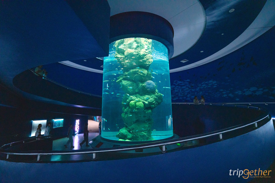 ก่อนที่เราจะเดินทางไปยังจุดสุดท้ายของวันนี้ เราเดินวนอ้อมตู้แทงค์ปลากทรงกระบอกขนาดใหญ่ ด้านในมีตัวเล็กตัวน้อยให้เราดูอีกด้วย
